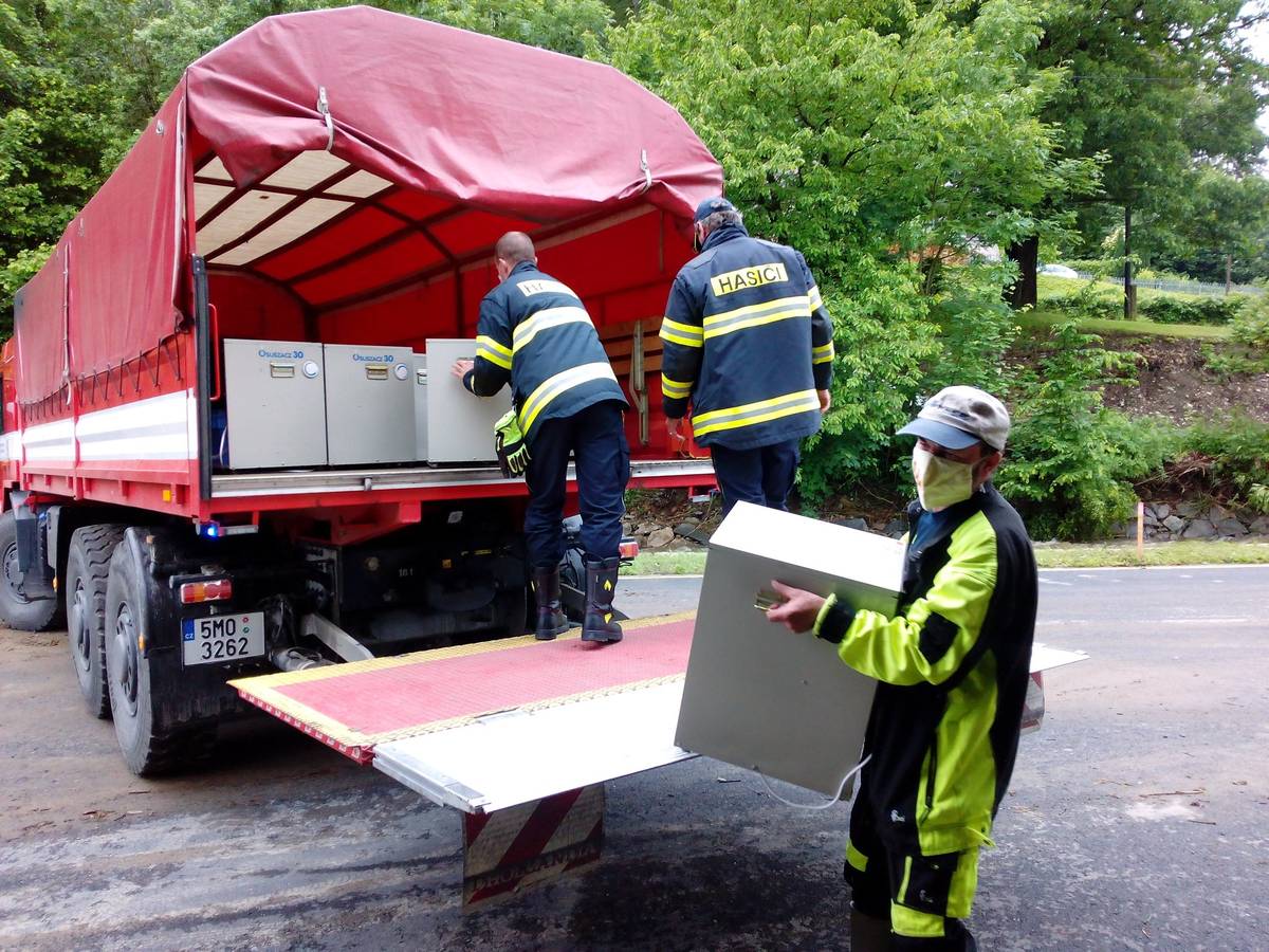 Hasiči zajišťují také vysoušeče, ale i prostředky na úklid včetně dezinfekce.