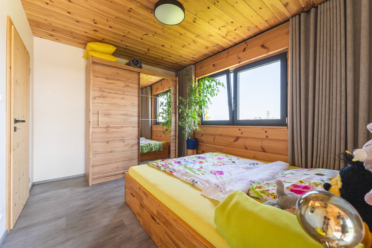 „Přijde mi, že je v dřevostavbě menší prašnost. Je tady všude kolem pole a stejně se tady méně práší,“ popisuje Tereza první výhodu dřevostavby, která ji napadla.