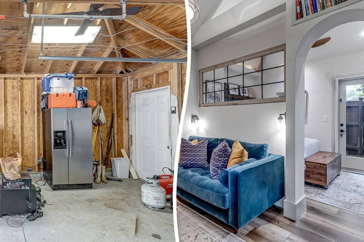 Pohled na původní garáž a to, jak vypadá prostor po tříměsíční rekonstrukci: nebe a dudy, jak se říká