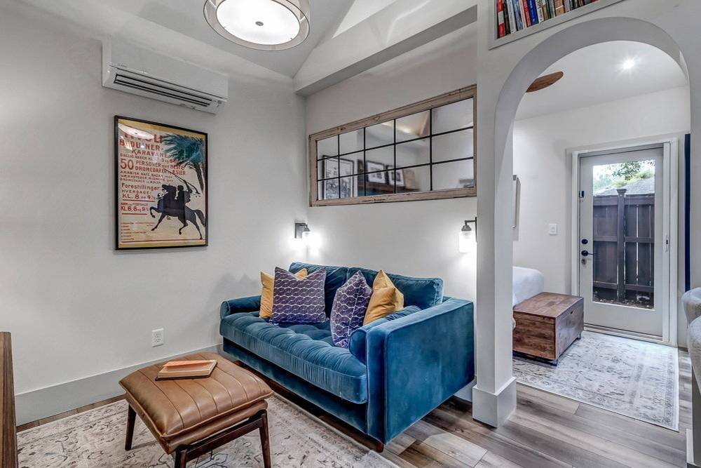 Obytné zóny jsou odděleny zdí, ale aby do nich šlo dost světla, mají mezi sebou i prosklenou část, jakési industriálně laděné okno