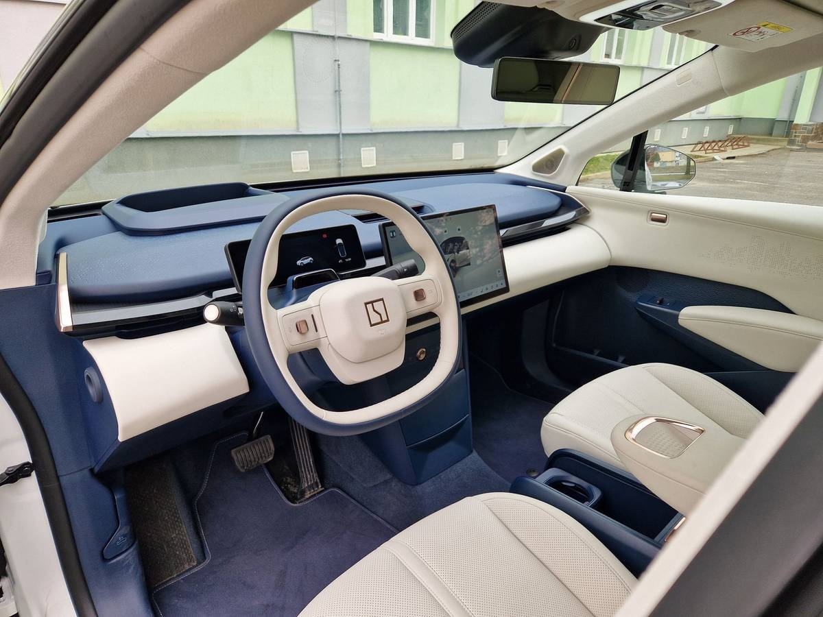 Bezrámová přední okna jsou efektní, stejně jako modro-béžová kombinace interiéru. Ta ale není nic pro konzervativní zákazníky.
