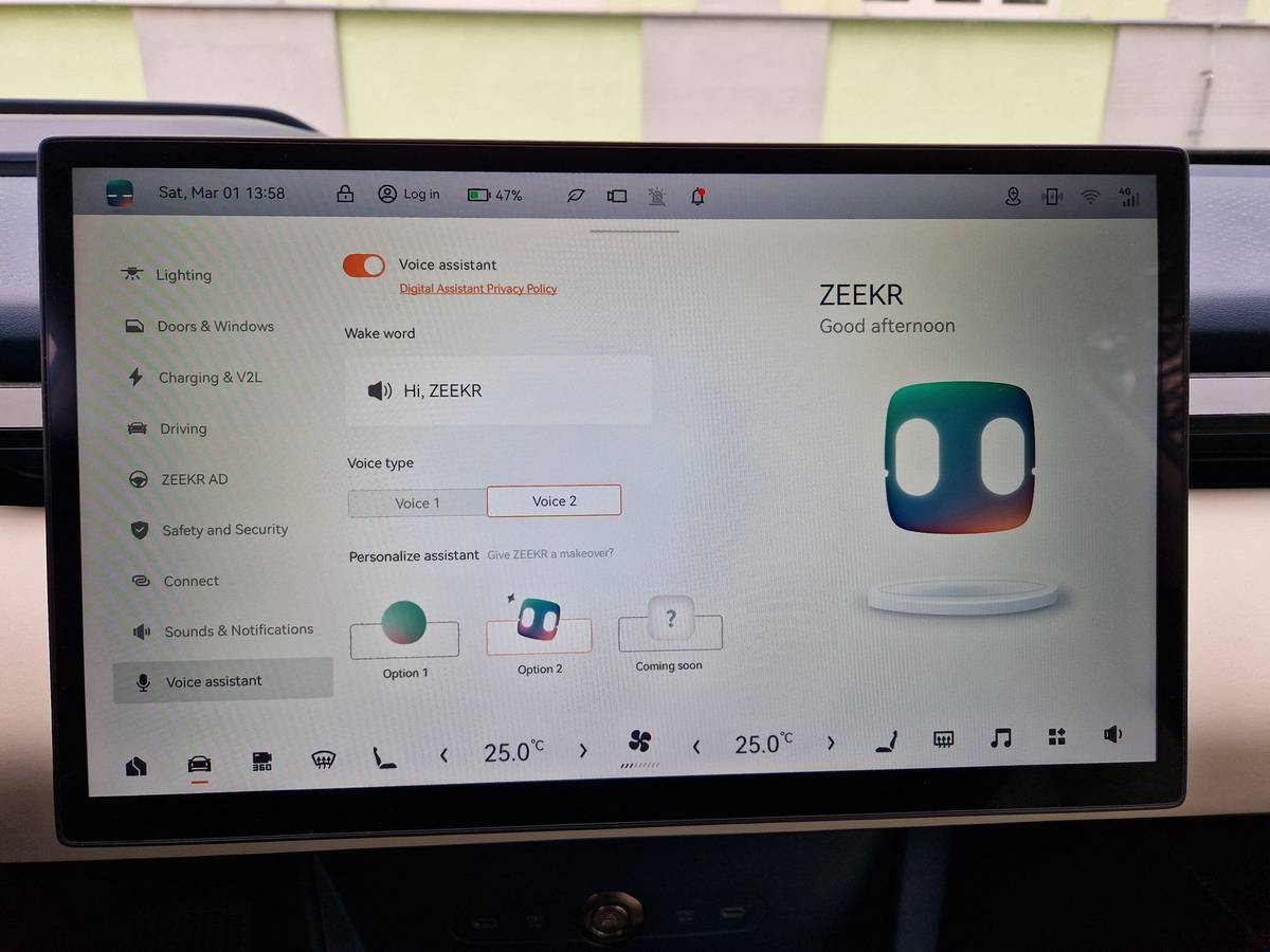Zeekr má také hlasové ovládání s vlastní umělou inteligencí.