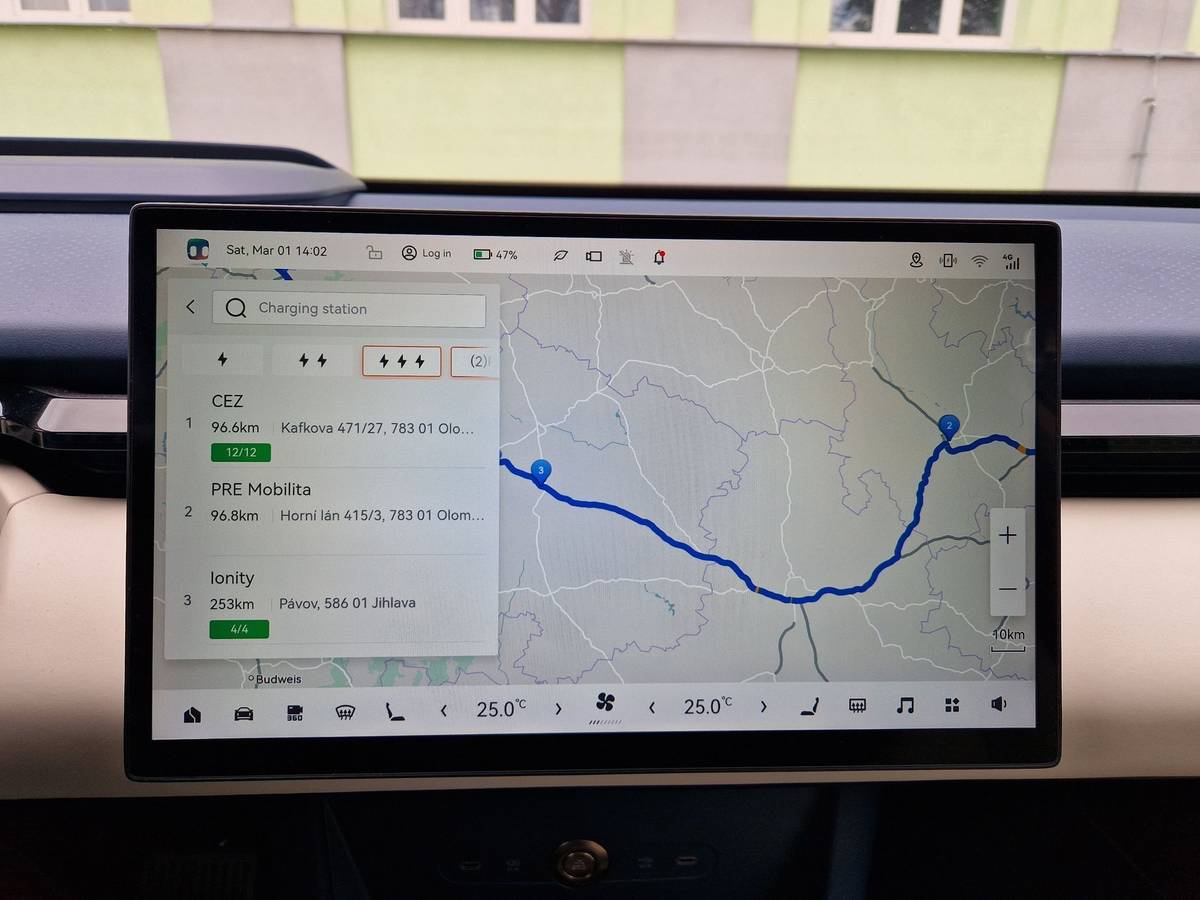 Navigace zvládá během trasy doporučit místa na nabíjení. Pokud je nabíječka nastavená jako cíl v navigaci, auto samo spustí předehřev baterie. Případně jej může řidič zapnout také ručně.