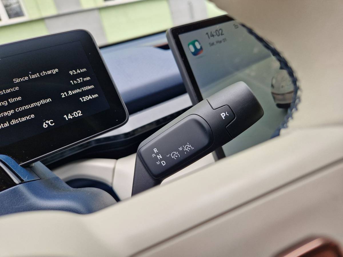Na rozdíl třeba od Tesly má Zeekr X stále pod volantem klasický volič převodovky.