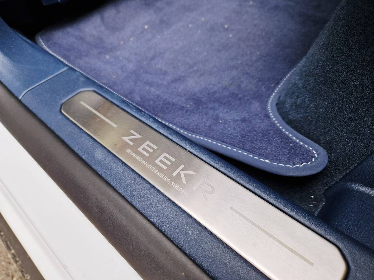 První dojem z interiéru je pozitivní, design je minimalistický, materiály vypadají hodnotně a nevadí ani divoká kombinace béžové a modré. Problém nastane při bližším ohledání s materiály: v horní části palubní desky a výplních dveří jsou plasty hodnotné a měkčené. Níže ale Zeekr sáhl po tvrdých plastech zbytečně náchylných k poškrábání. Ani na pohled navíc nejsou nic moc.