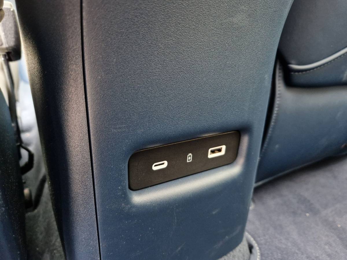 Výdechy ventilace ale vzadu Zeekr nemá, stačit musí USB-A a USB-C nabíječky, opět ale s okolním plastem, který by mohl být i kvalitnější.