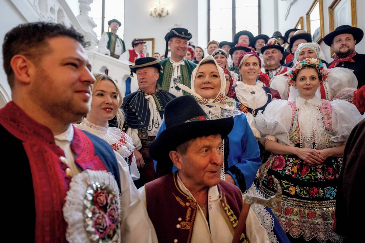 Poslanci v lidových krojích.