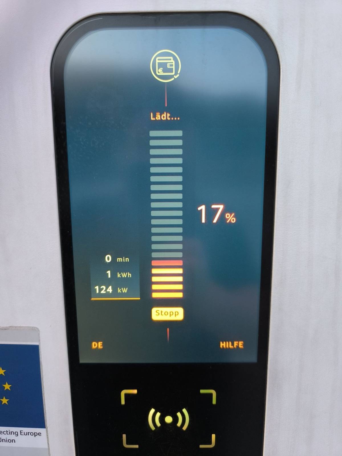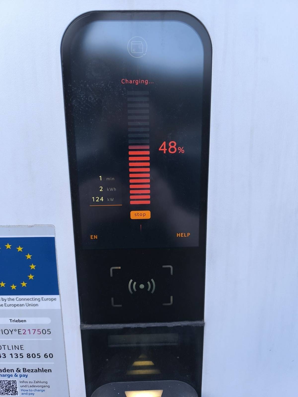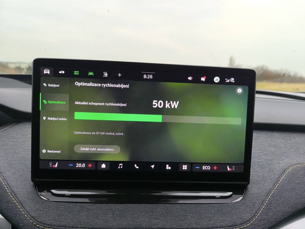 Vrcholem testu bylo dobíjení výkonem 149 kW u nabíječky slibující maximum 150 kW.