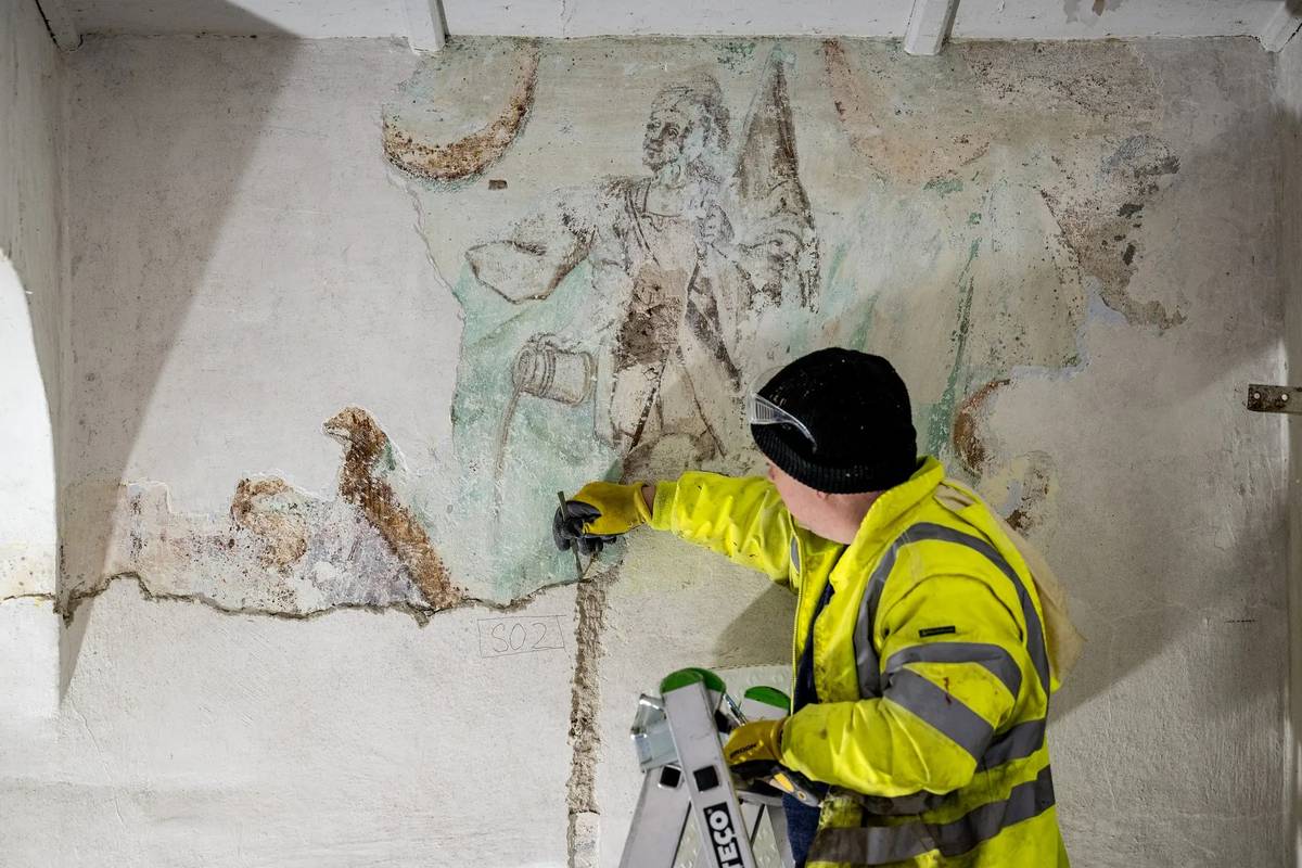 Restaurátor odkrývá barokní nástěnné malby v bývalém klášteře v Opočně