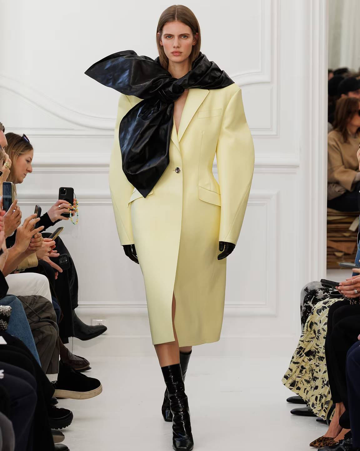 Givenchy. Součástí archivní kolekce z roku 1952 byly projmuté siluety i objemné mašle, které jako nějakým kouzlem drží tvar