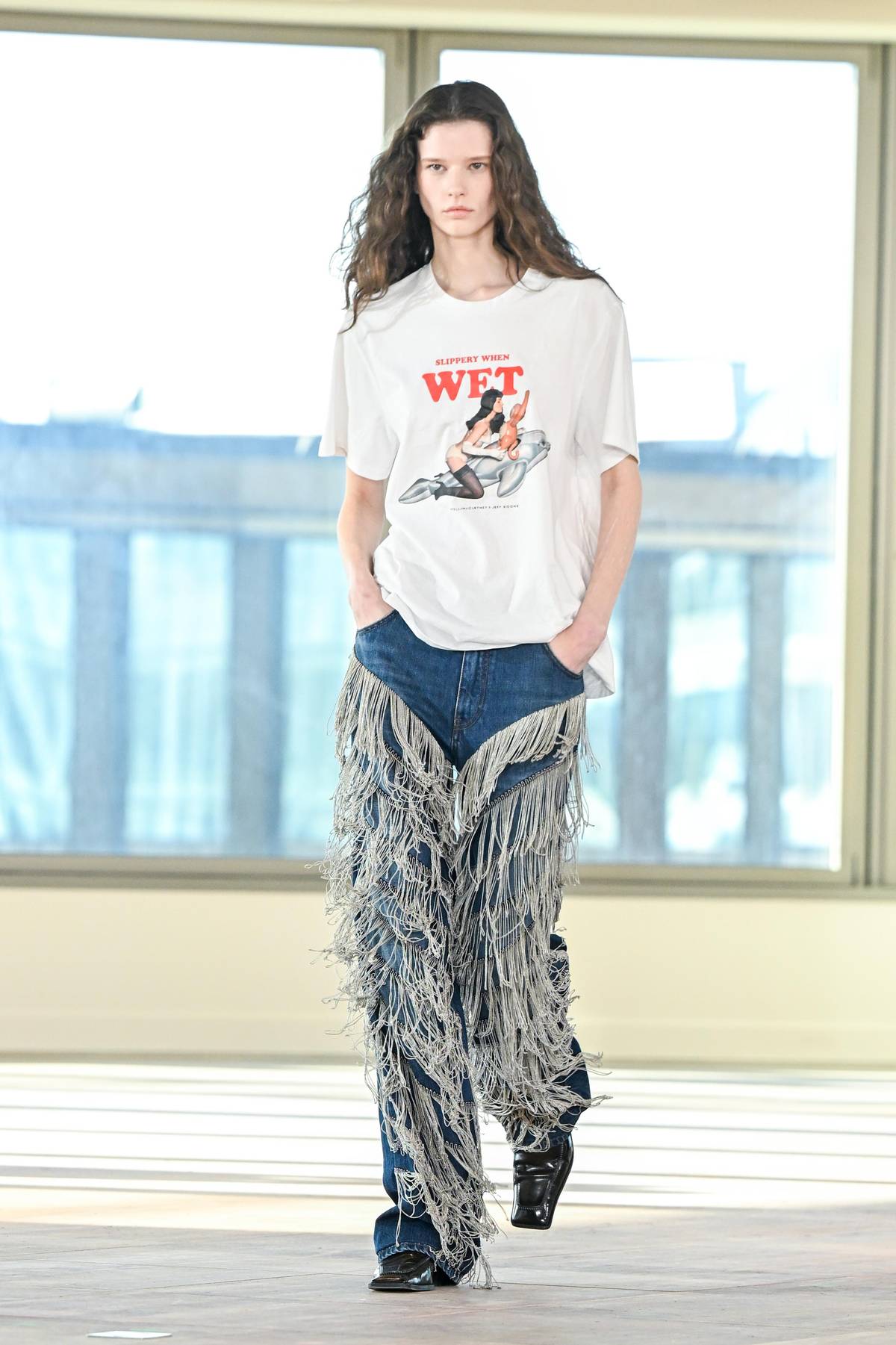 Stella McCartney. Od kalhot a sak odskočila i k džínám – a štědře je pokryla třásněmi