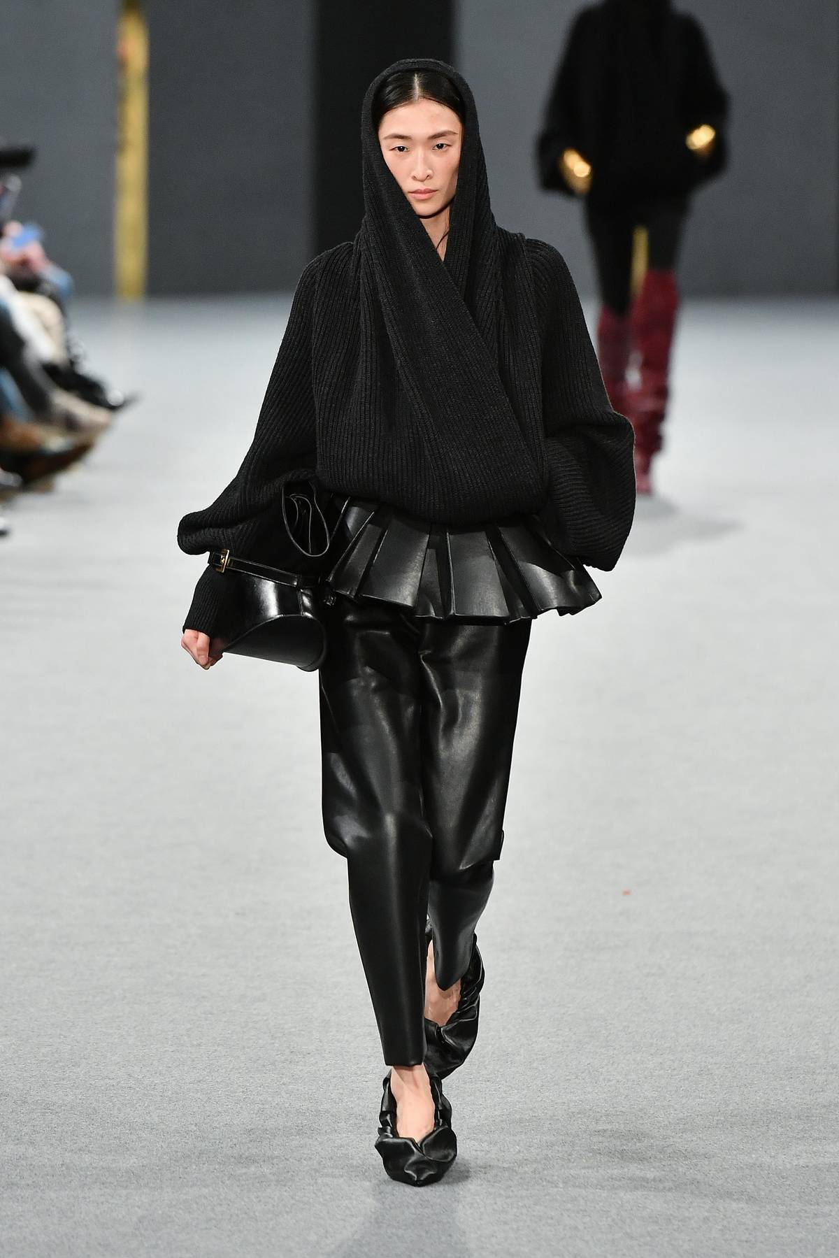Givenchy. Návrhářka Sarah Burton se inspirovala tvorbou Huberta de Givenchyho a řadu kousků „otočila“