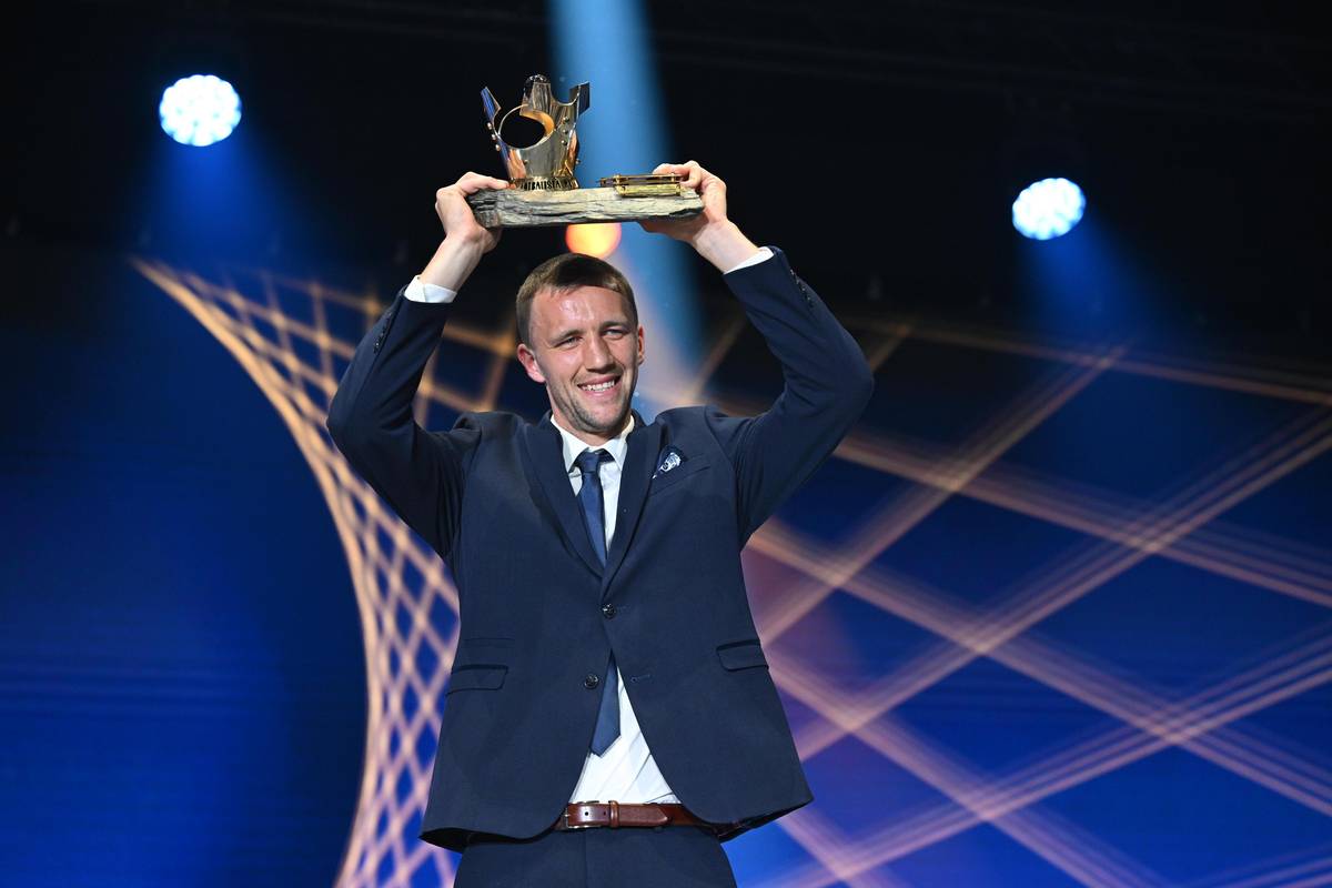 Tomáš Souček s trofejí pro vítěze ankety Fotbalista roku 2024
