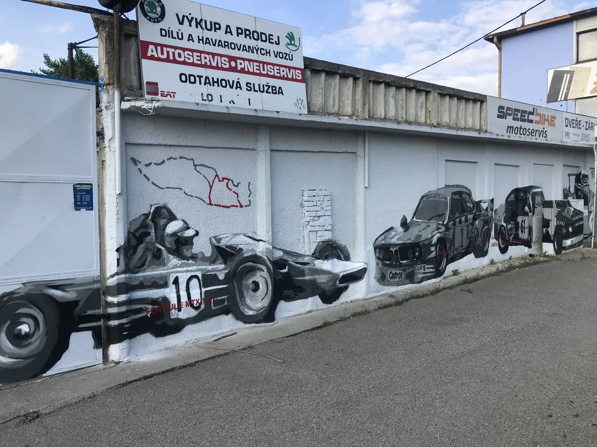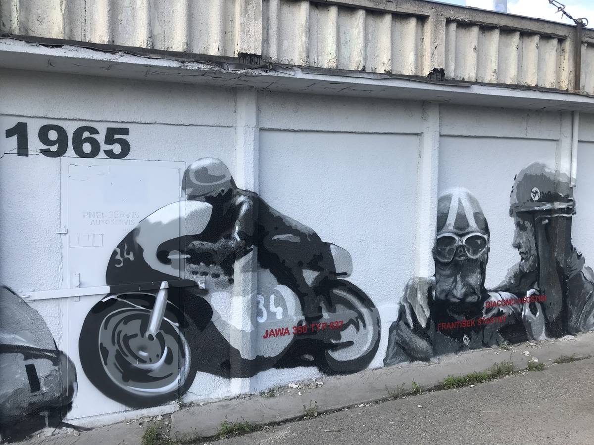 Starý Masarykův okruh v Brně žije! Bývalou boxovou zeď pokryla graffiti formulí, motorek i Šťastného. Jak se vám líbí?