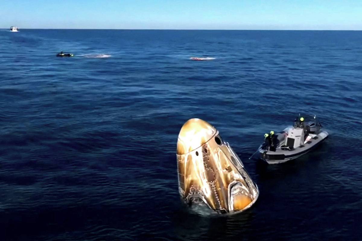 Záchranné operace pokračovaly vyzdvižením kapsle Crew Dragon na palubu lodi. Astronauti se vrátili po týdnech strávených na oběžné dráze zpět na povrch Země.