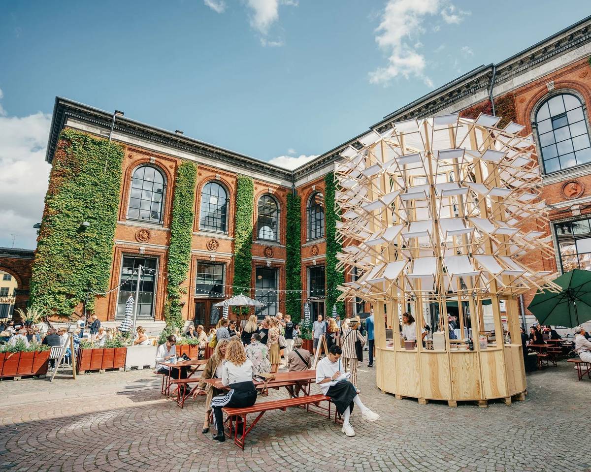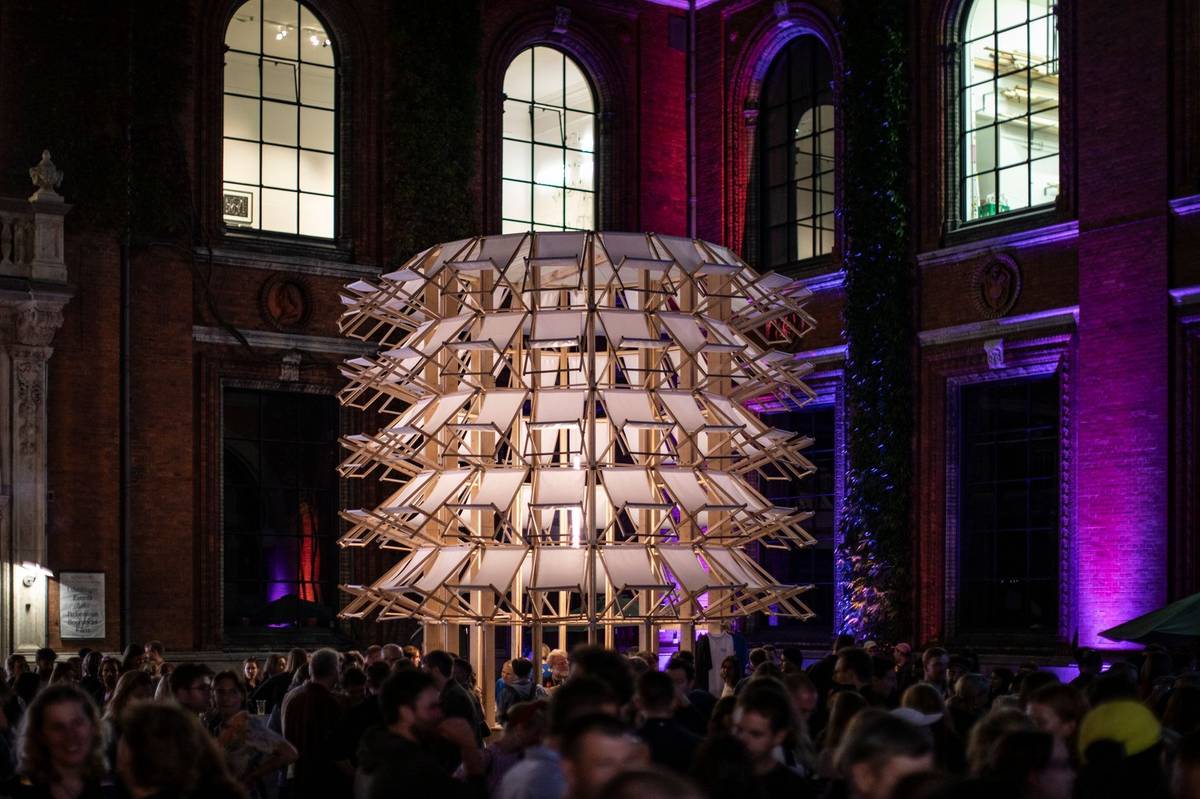 Dočasný kinetický pavilon s názvem Petal, který se skládá z lehátek, přinesl život na nádvoří kodaňského muzea.