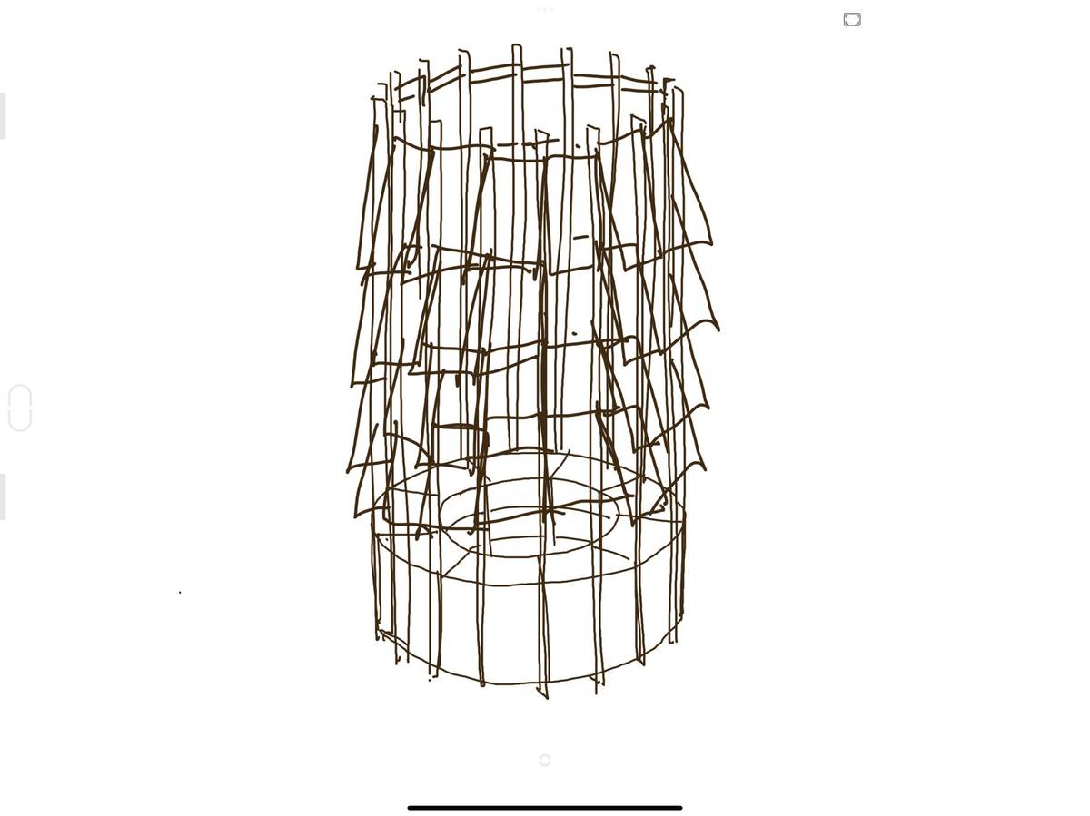 Dočasný pavilon je vyroben z 18 svislých částí, které jsou připevněny do dřevěné základny konstrukce. Každá sekce se skládá z pěti závěsných lehátek.
