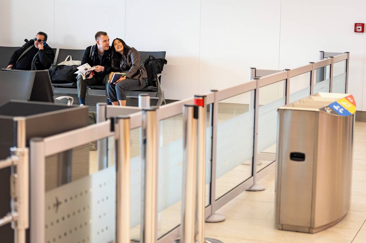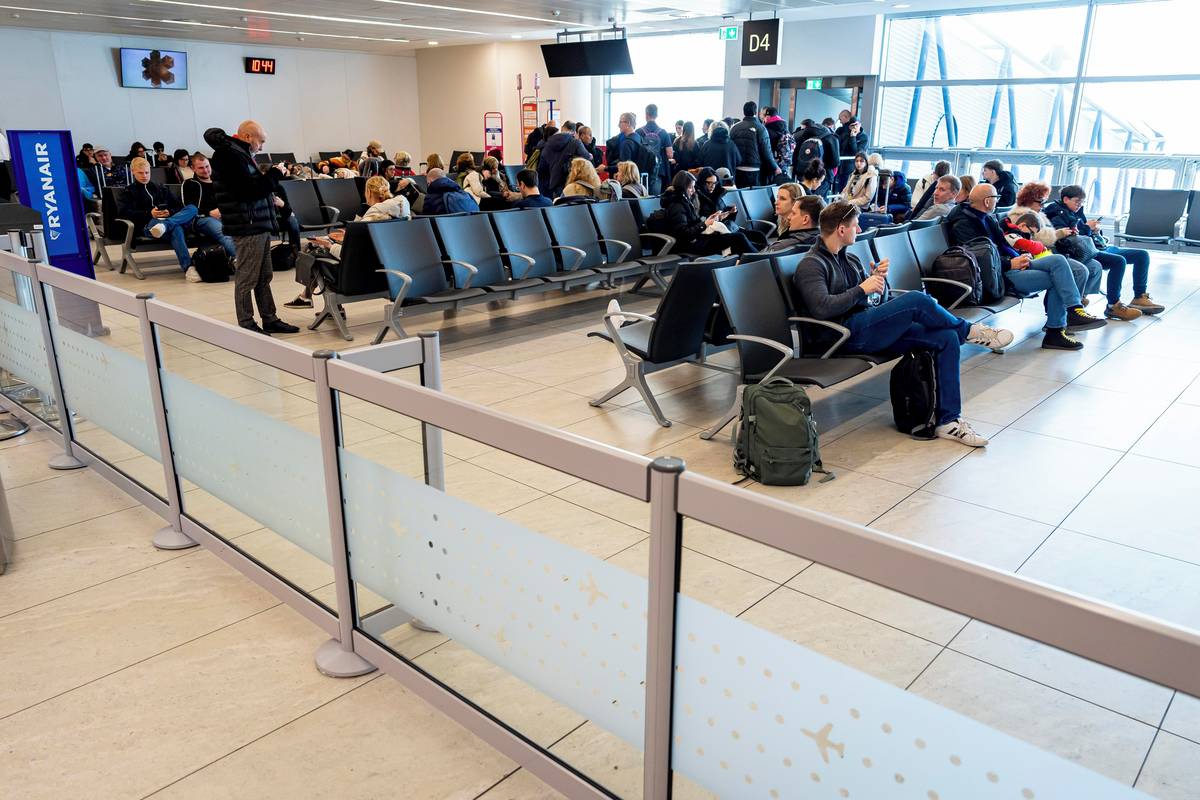 Cestující čekají v nově vybudované „ohrádce“ na pražském letišti. Takzvaný pre-boarding má urychlit nástup do letadla.