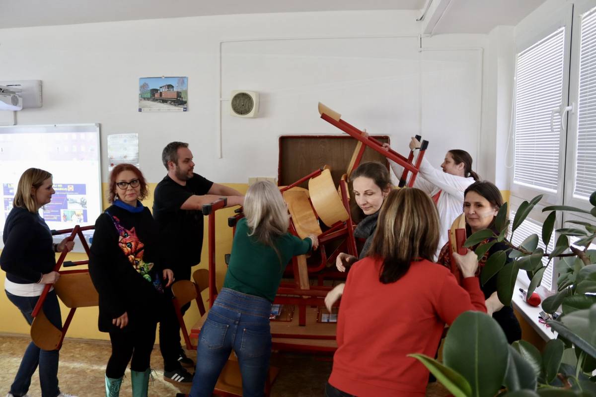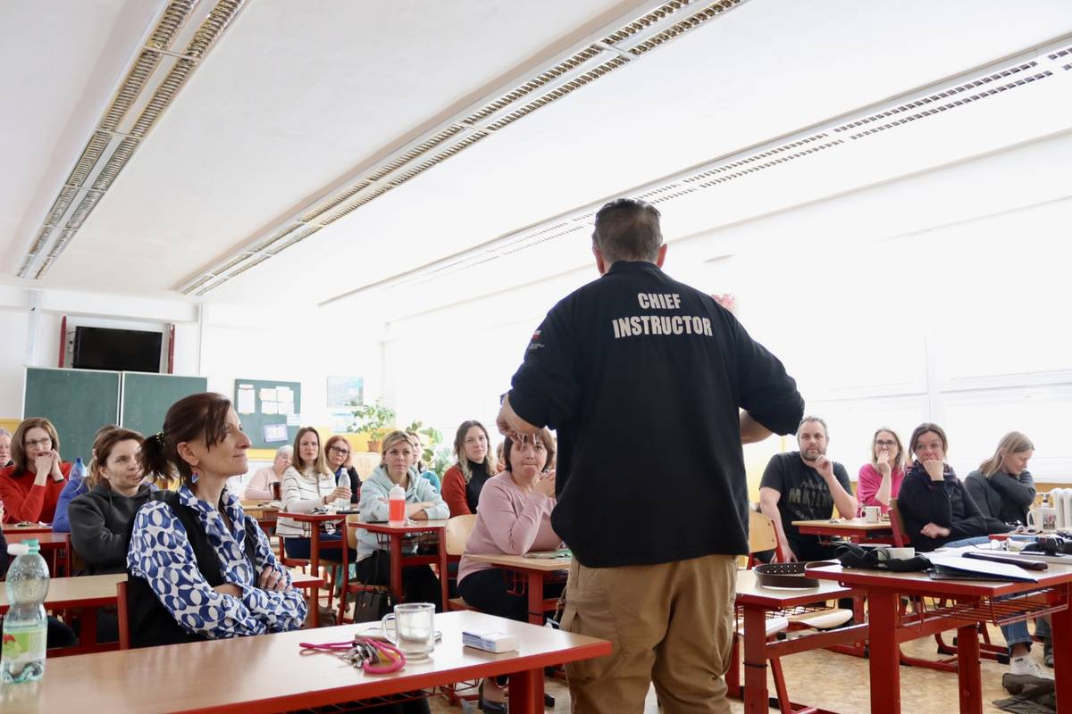 Učitelé si zkoušejí, jak mají v krajním případě zpomalit útočníka.