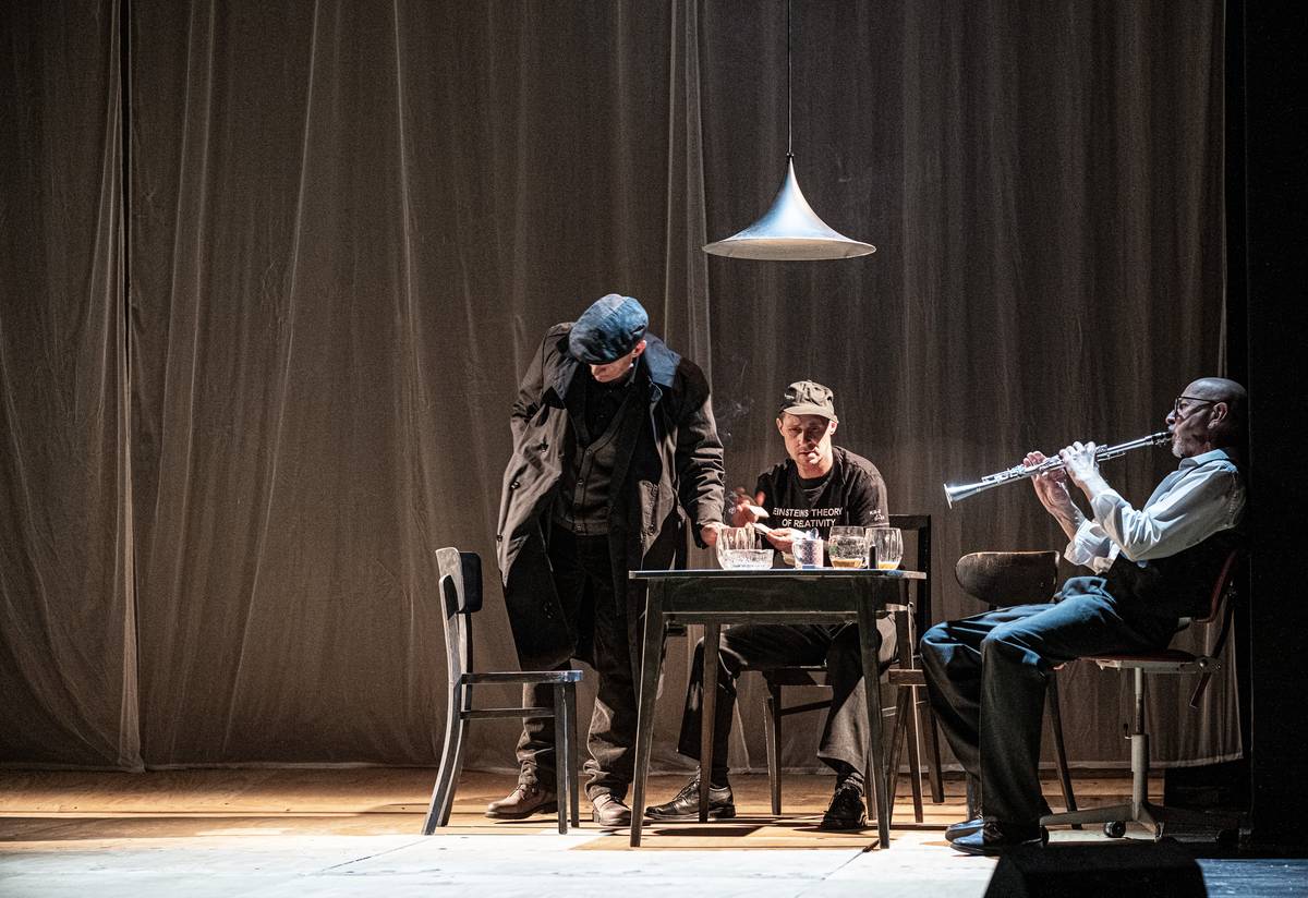 Na fotografii z inscenace Senzibil, kterou tuto sobotu uvede Divadlo Šumperk, jsou René Šmotek jako Rudy, Alexandr Stankuš coby Popescu, Filip Černý v roli Mirka a Tomáš Wurst jako Koflík.