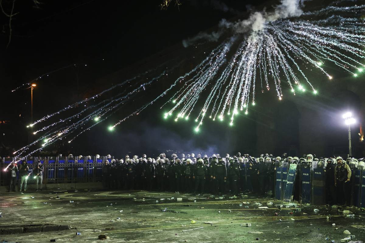 Imamoglu vinu odmítá a své příznivce vyzval k masovým nepokojům. (Následky policejního zásahu proti demonstrantům, kteří se bez povolení chtěli dostat na istanbulské náměstí Taksim, 23. března).