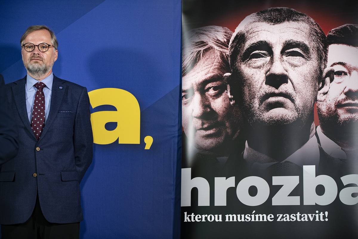 Petr Fiala vedle plakátu na představení nové kampaně v roce 2021.