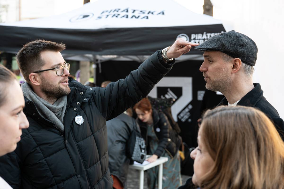 Zdeněk Hřib v kontaktu s potenciálními voliči. Oslabení Piráti podle něj stále doufají ve dvouciferný výsledek.