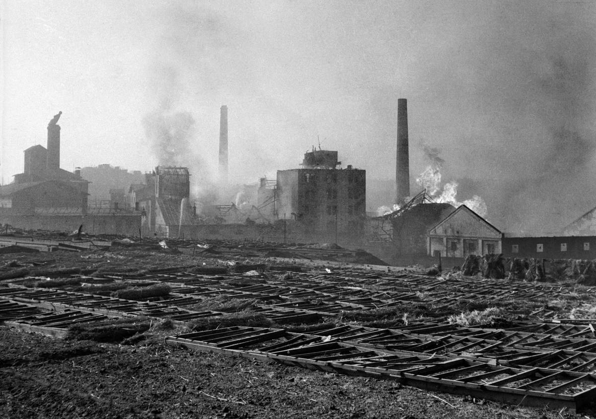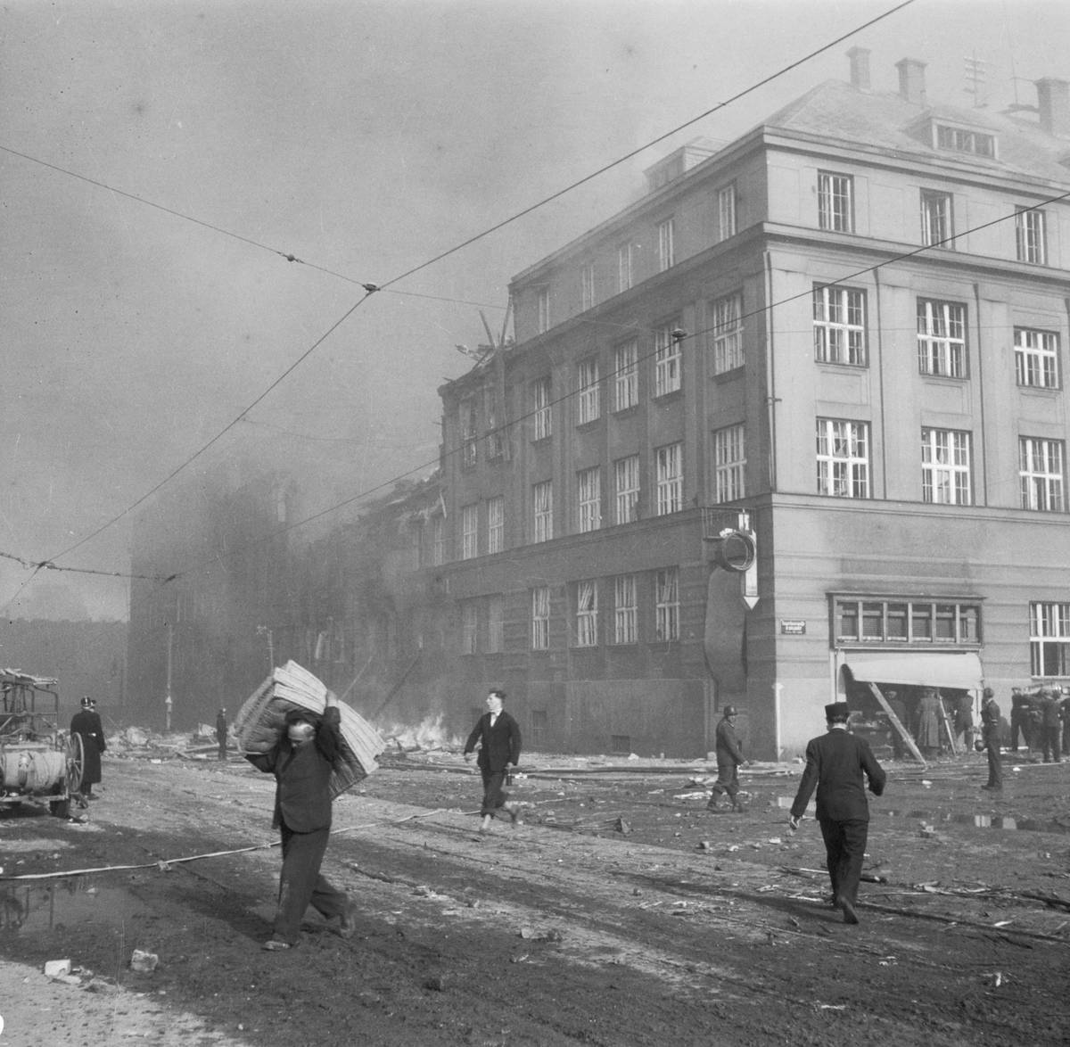 Praha po leteckém bombardování 25. března 1945