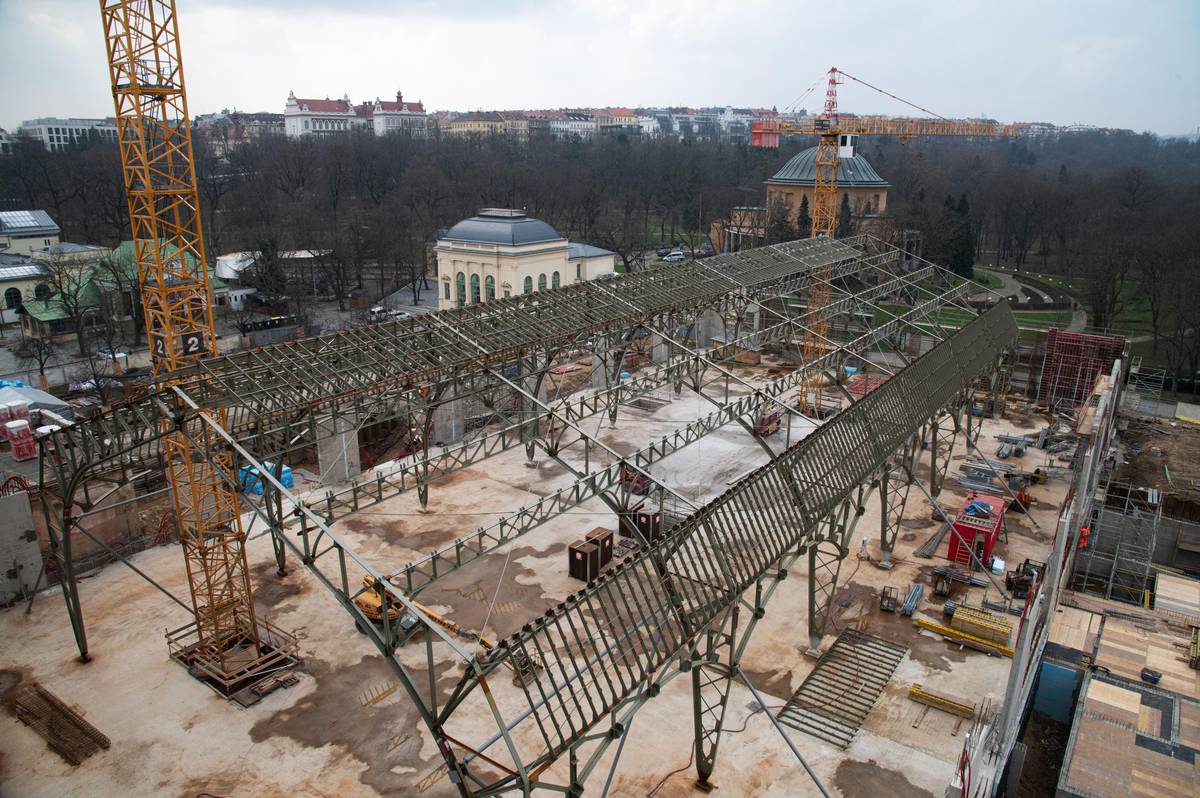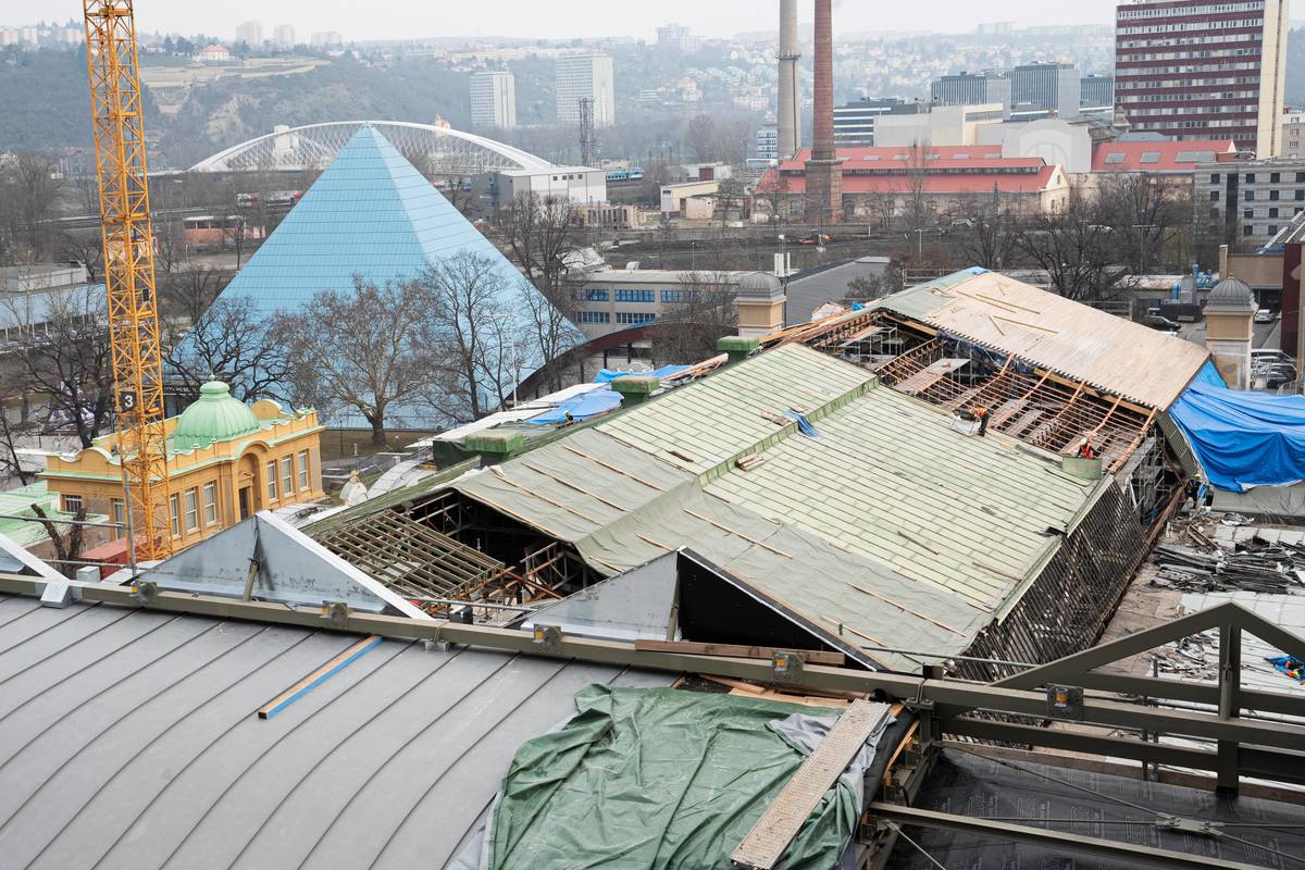Střecha ve střední hale je dokončená z 80 %, uvedli stavaři v tiskové zprávě.