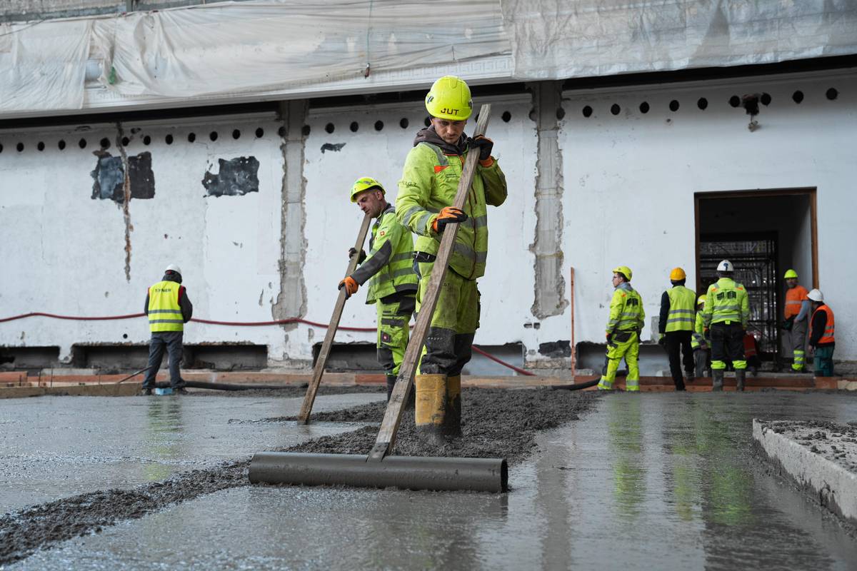 Po dokončení podkladního betonu ve střední hale se zahájí práce na podkladové desce s podlahovým topením včetně opravy omítek.