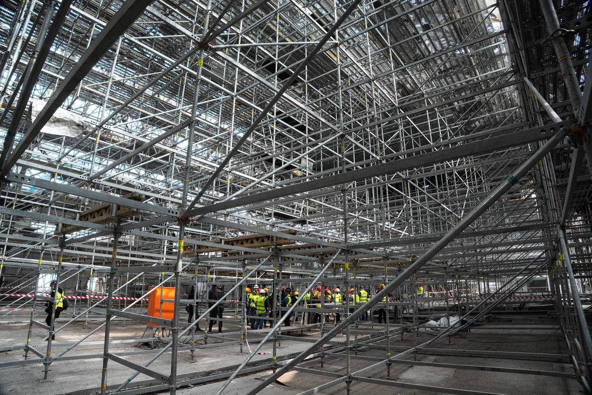 V části střední haly ještě stojí lešení.