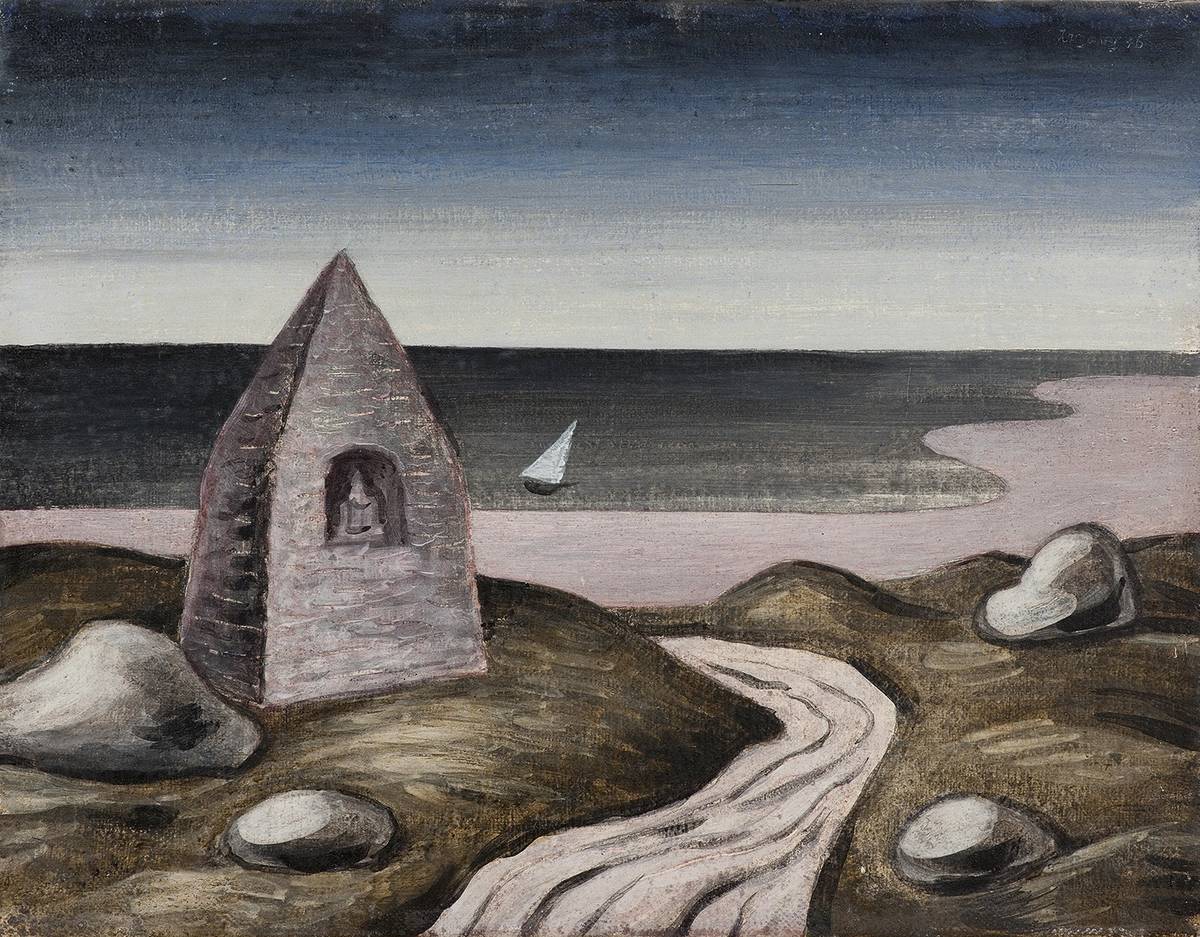 Jan Zrzavý (1890-1977), Kaple sv. Brandana, olejová tempera na papíře; 27 × 35 cm, 1946, ze sbírky Kooperativy
