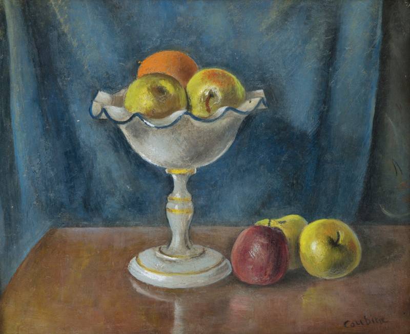 Otakar Kubín (1883–1969), Zátiší s jablky a pomerančem, olej na plátně, 38 × 45,5 cm, kolem 1930, soukromá sbírka