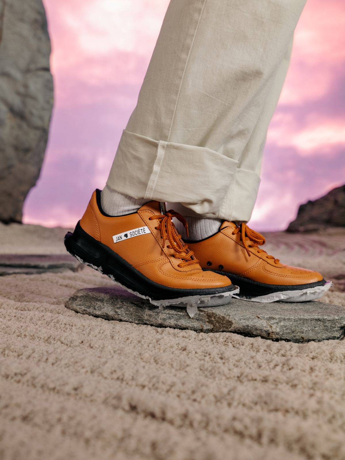 Tenisky Prestige x Jan koňakové barvy z kůže mají na vnitřní straně boty perforaci, aby zajistily větrání i ve vyšších teplotách.
