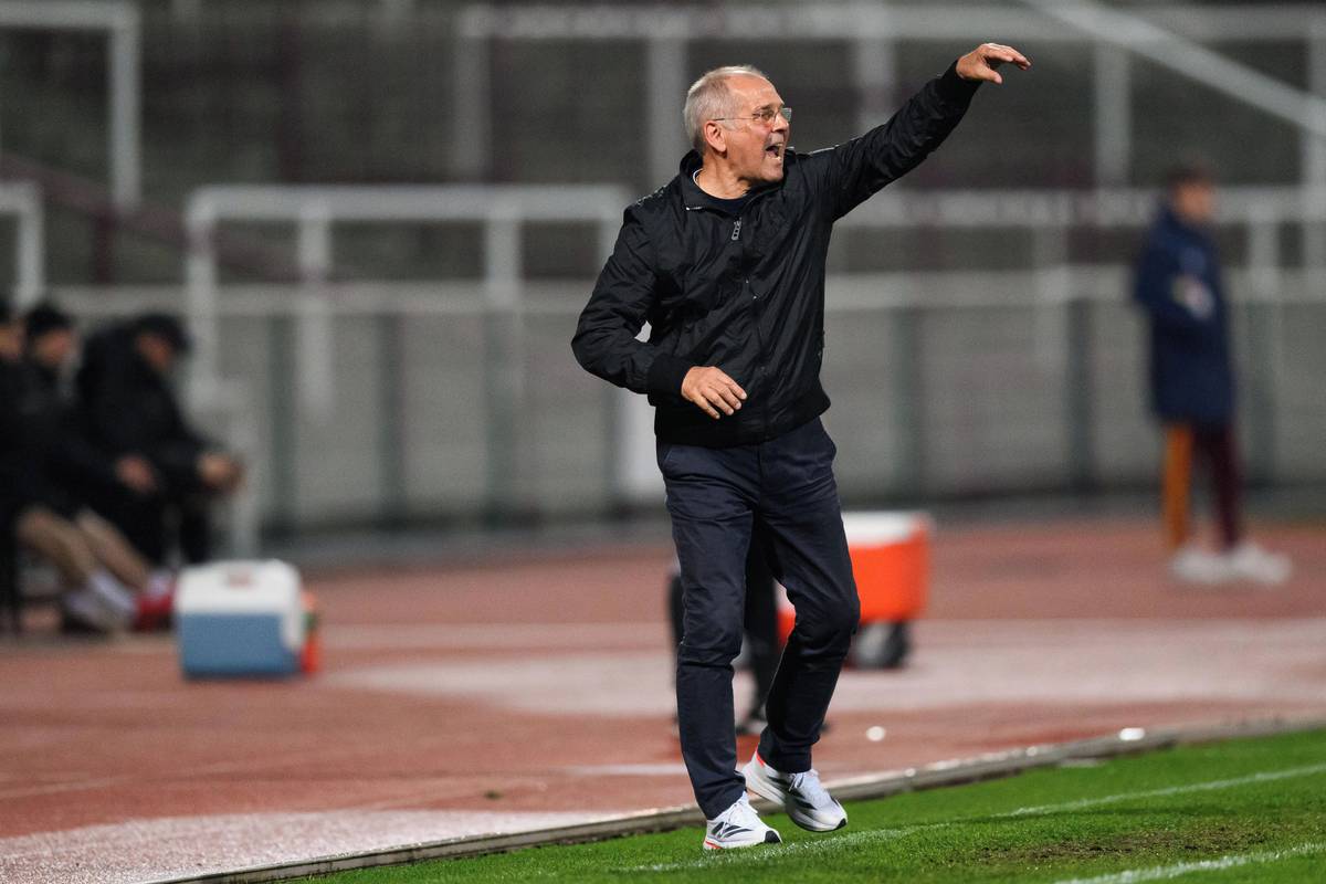 Trenér Dukly Praha Petr Rada během utkání se Slavií