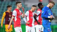 Zklamaní fotbalisté Slavie (zleva) David Douděra, Jan Bořil, Oscar Dorley a Jindřich Staněk.