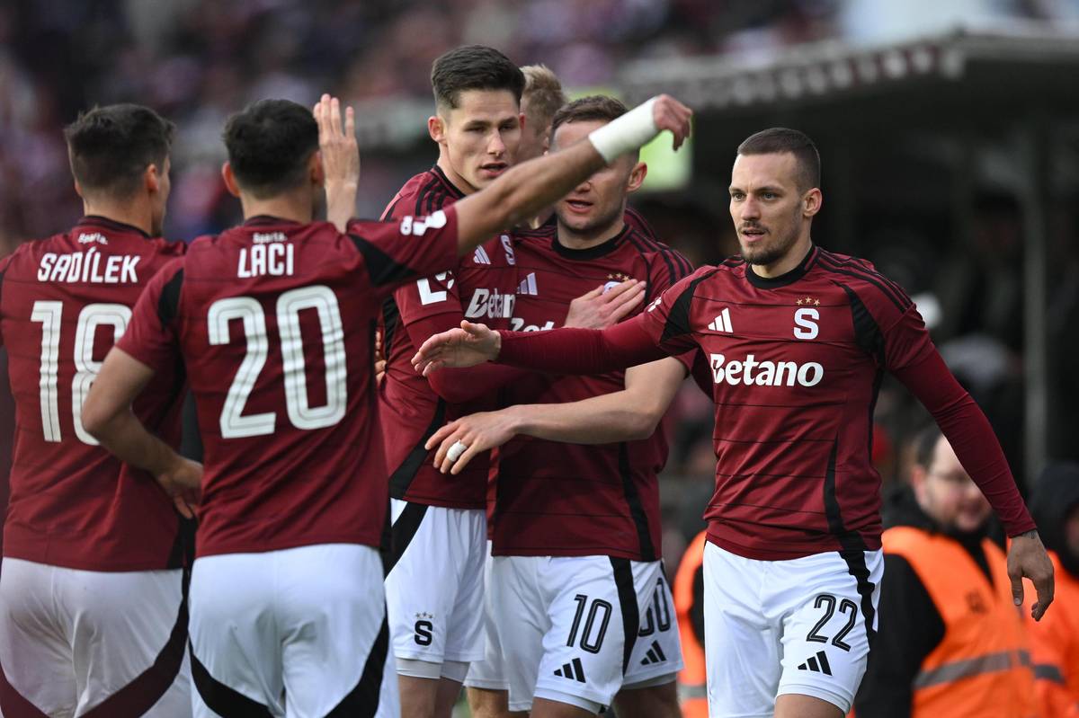 Utkání 27. kola první fotbalové ligy, Sparta Praha – Viktoria Plzeň, skóre otevřel domácí Lukaš Haraslín.