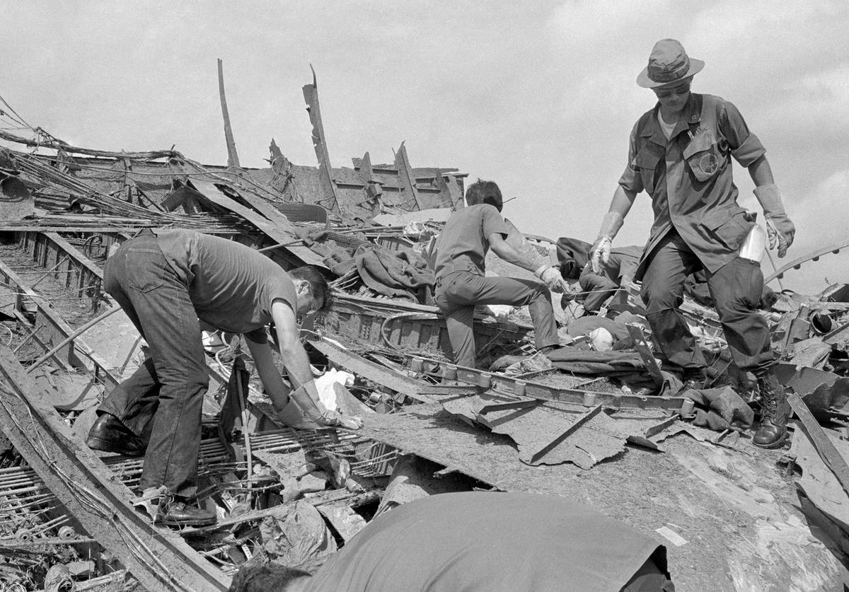 Trosky tragického prvního letu, který z Vietnamu s prvními dětmi startoval 4. dubna 1975. Letadlo C-5A Galaxy se jen krátce po startu stalo hromadným hrobem. Kvůli poruše zámků zadní nákladové rampy a jejím následkům se letadlo stalo neovladatelné a pokus o nouzové přistání skončil smrtí 138 lidí, z toho 78 dětí. Přežilo 178 pasažérů a členů posádky.