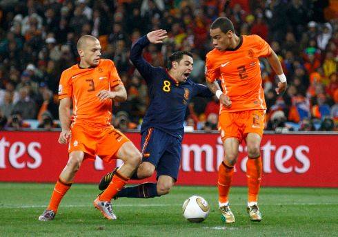 Druhý defenzivní štít Xabi Alonso, který ve finále takto inkasoval legendární kop od Nigela de Jonga, ukončil kariéru už před třemi lety v Bayernu Mnichov. Nyní trénuje rezervu San Sebastiánu.