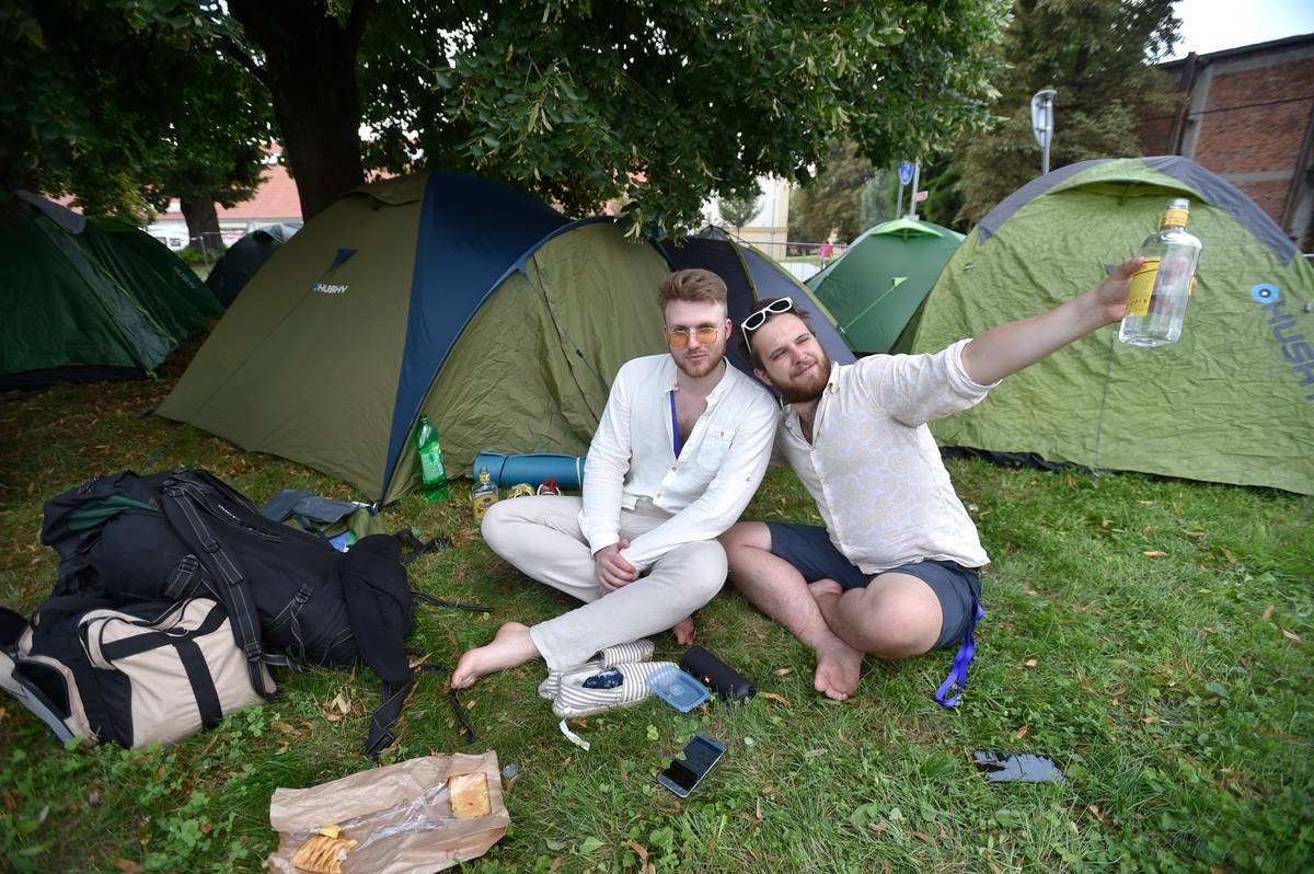 Návštěvníci Letní filmové školy ve stanovém městečku.