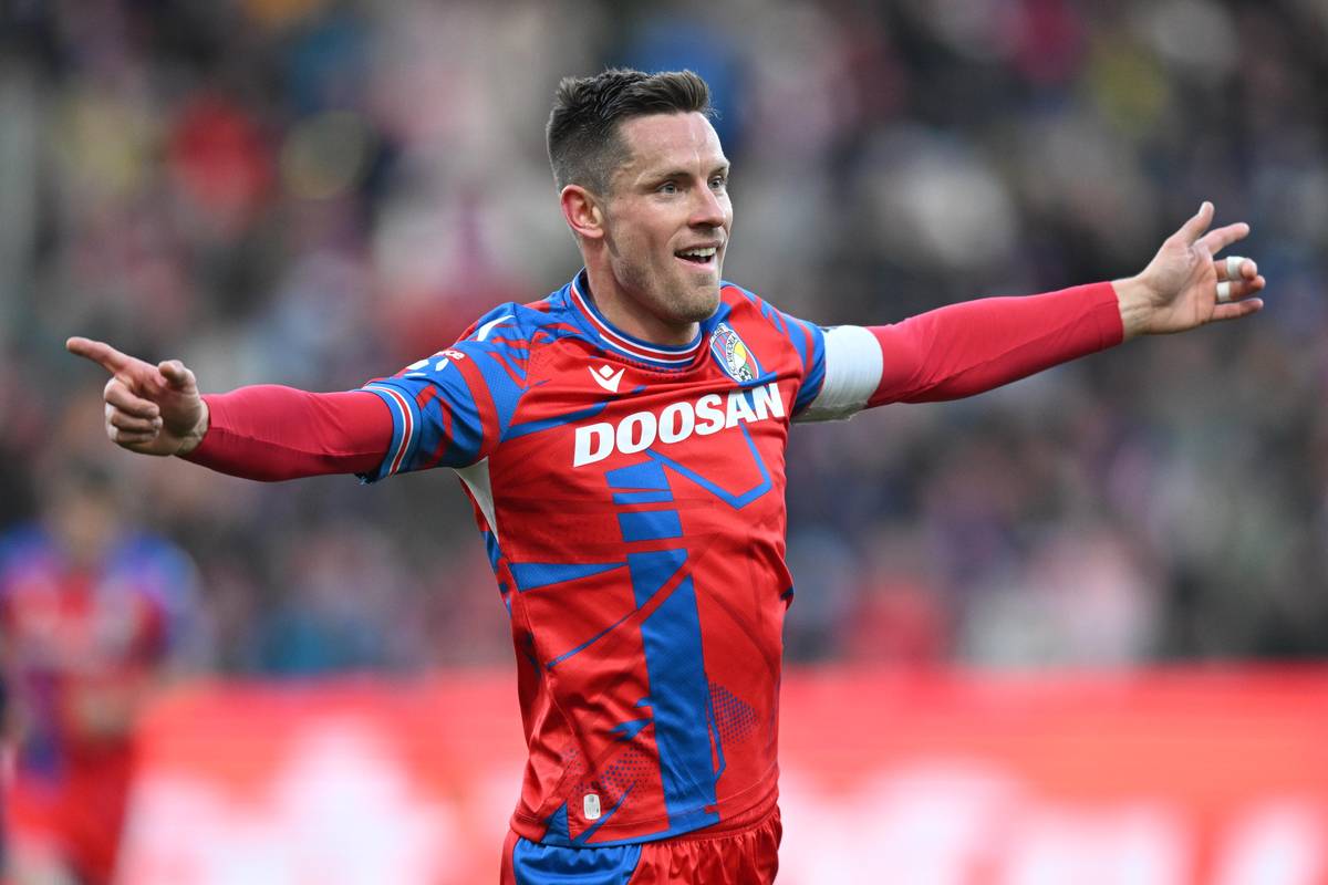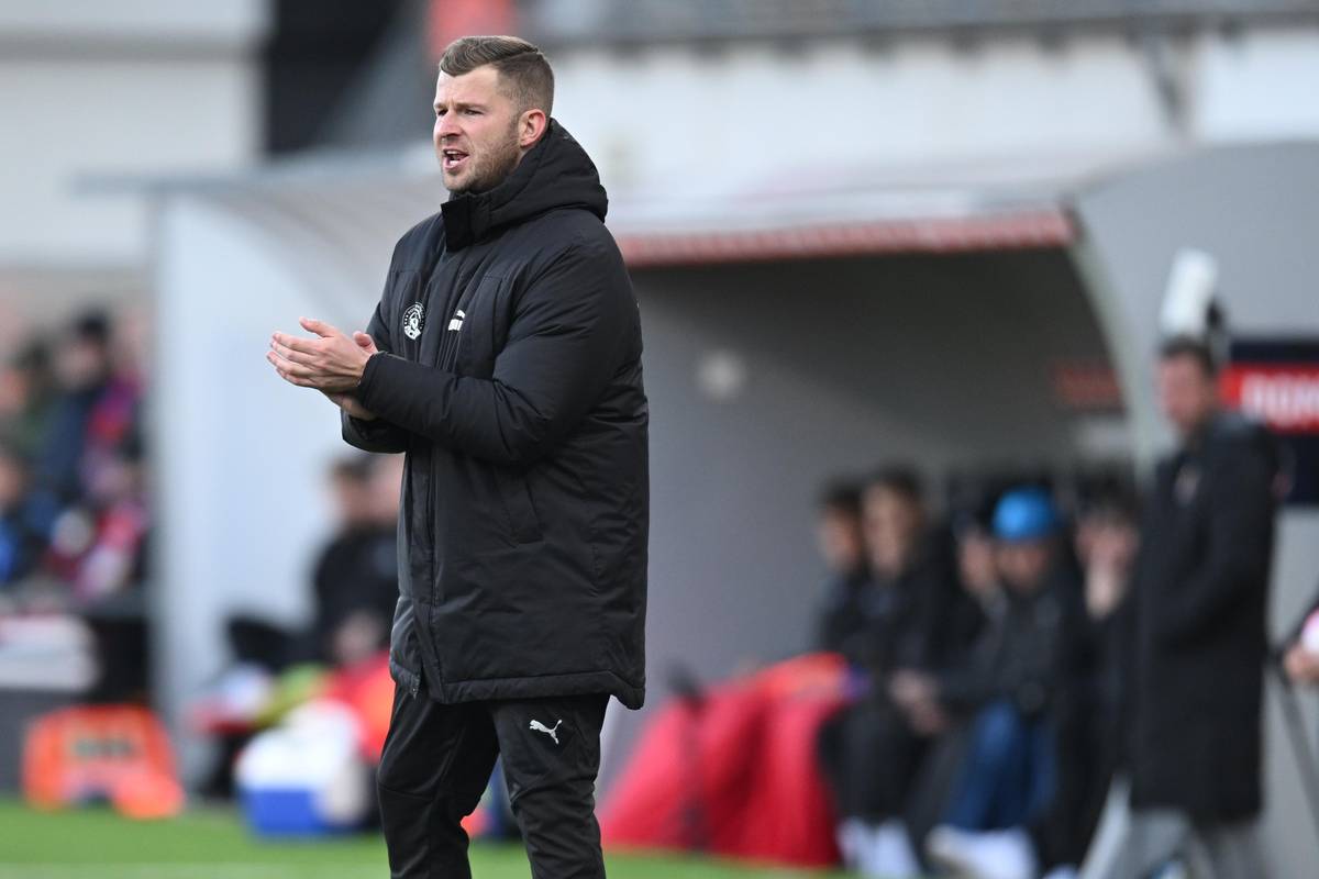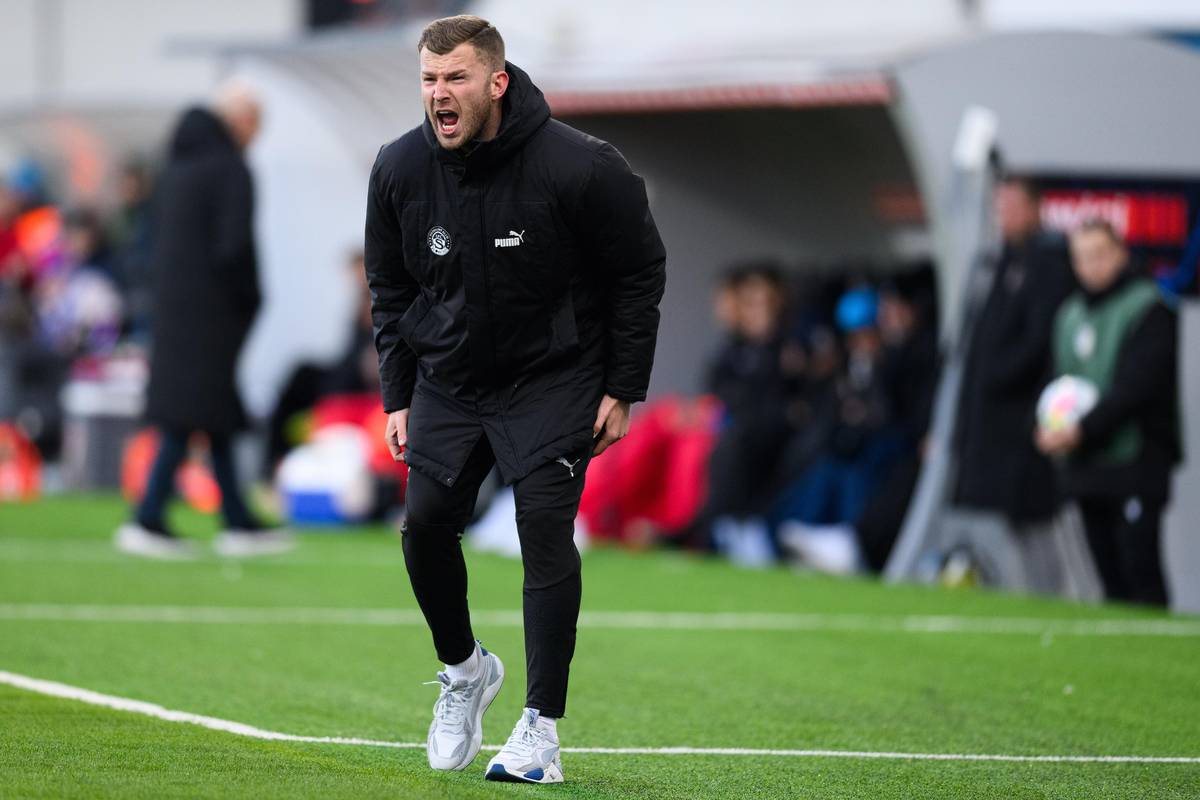 Trenér Slovácka Tomáš Palinek během utkání 28. kola Chance ligy, FC Viktoria Plzeň - 1. FC Slovácko, hrané 6. dubna 2025 v Plzni.