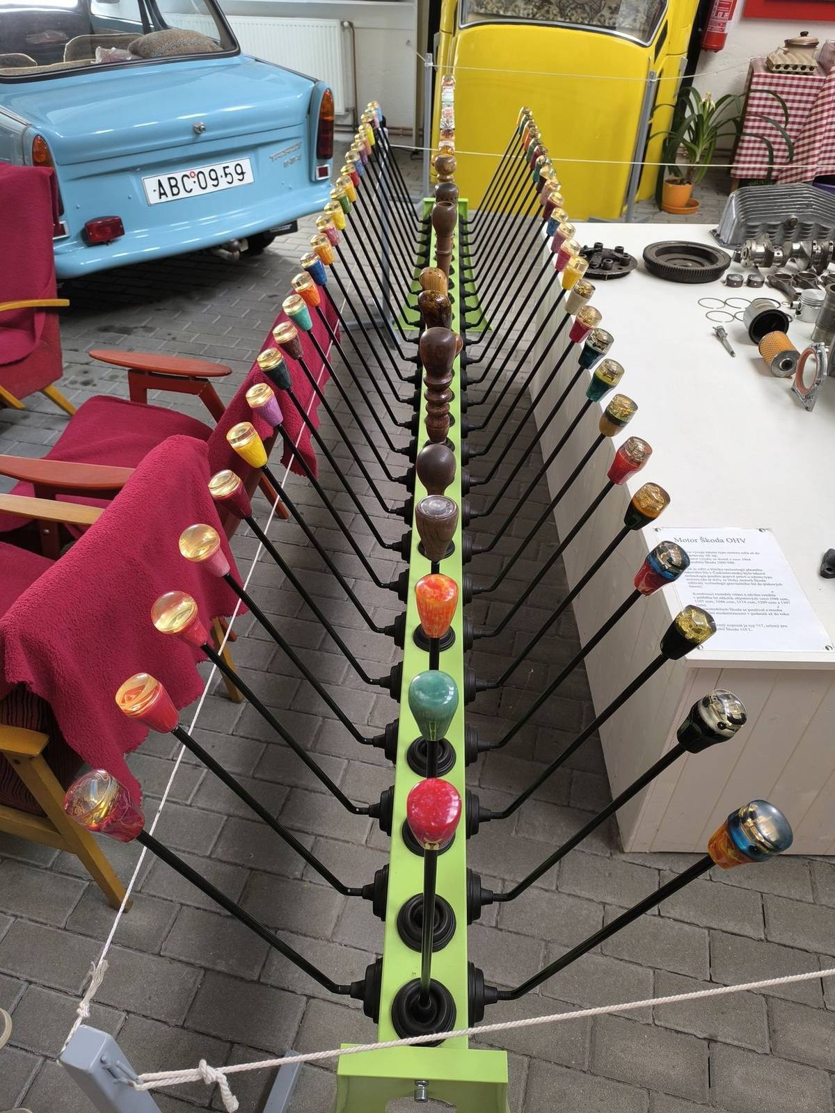 O kvalitě plastů sovětských vozů se může ve Strnadicích přesvědčit každý na vlastní oči, malou výstavku lze objevit za oknem starého moskviče.