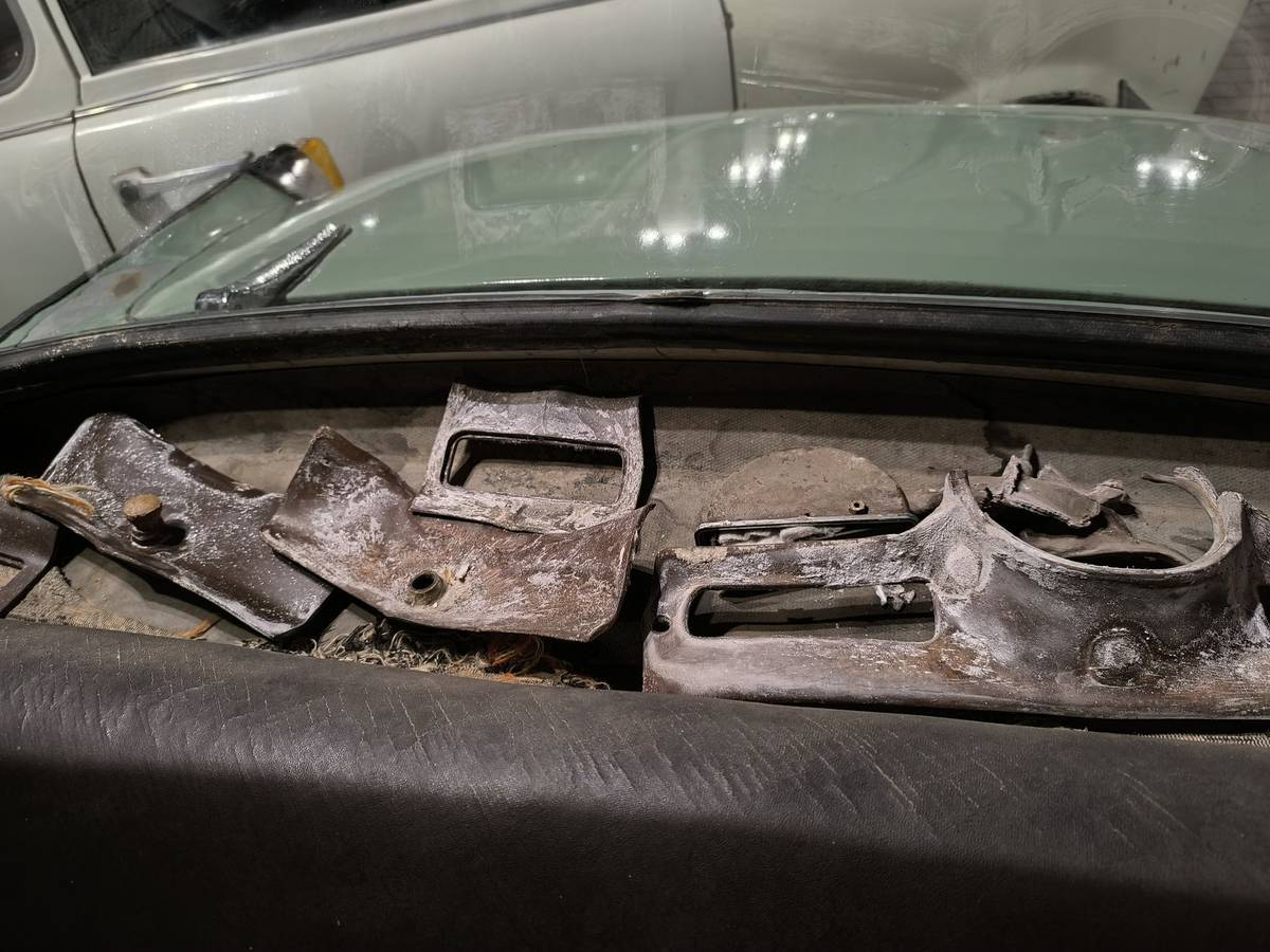 Původní plasty z přístrojové desky jsou už velmi křehké.