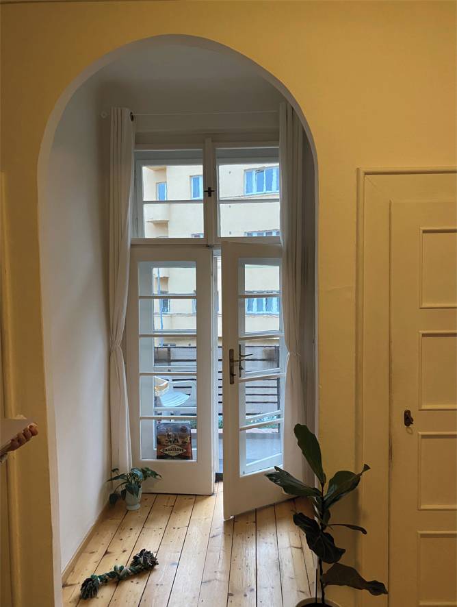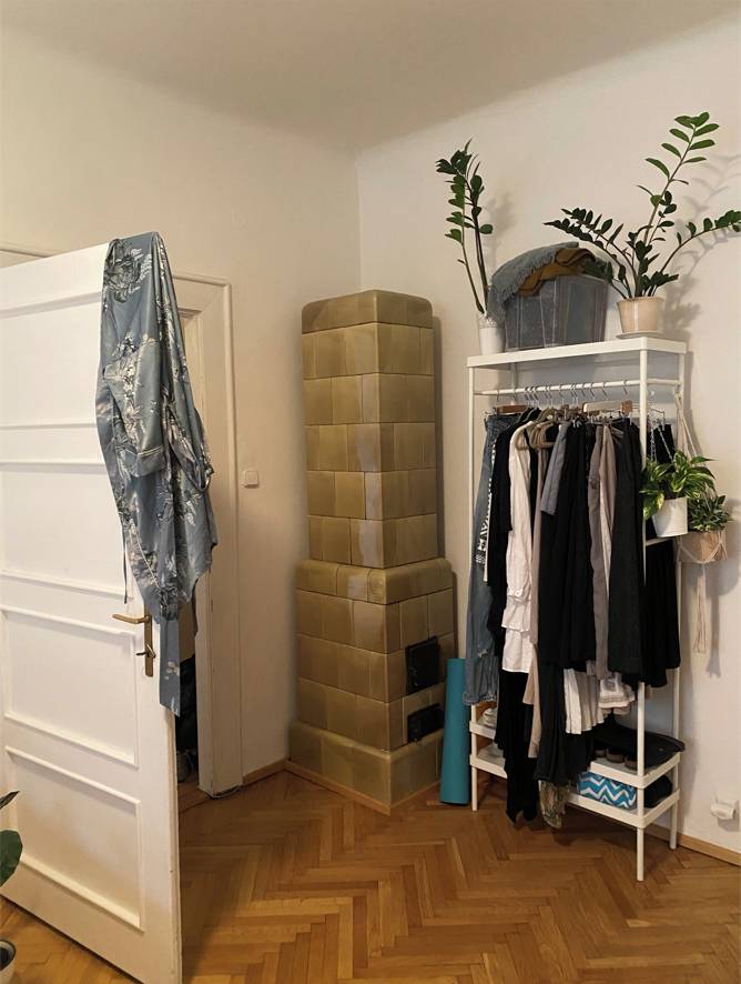 Na podlaze je v celém bytě lindura, dřevěná krytina odolná proti poškození a vhodná pro podlahové topení