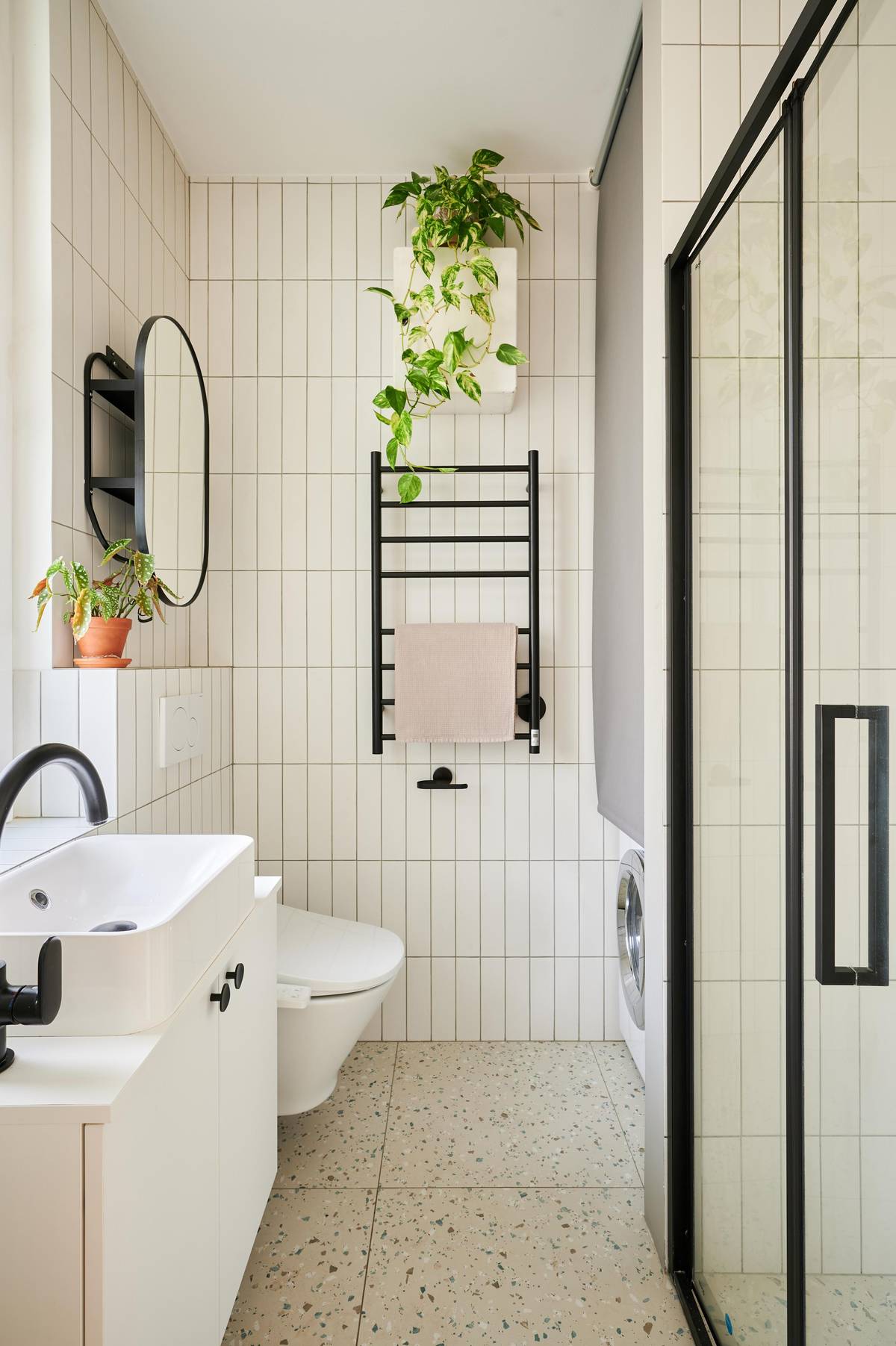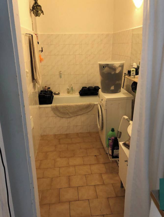 S toaletou se hýbat nedalo, proto v jejím místě vznikla menší koupelna se sprchovým koutem a pračkou