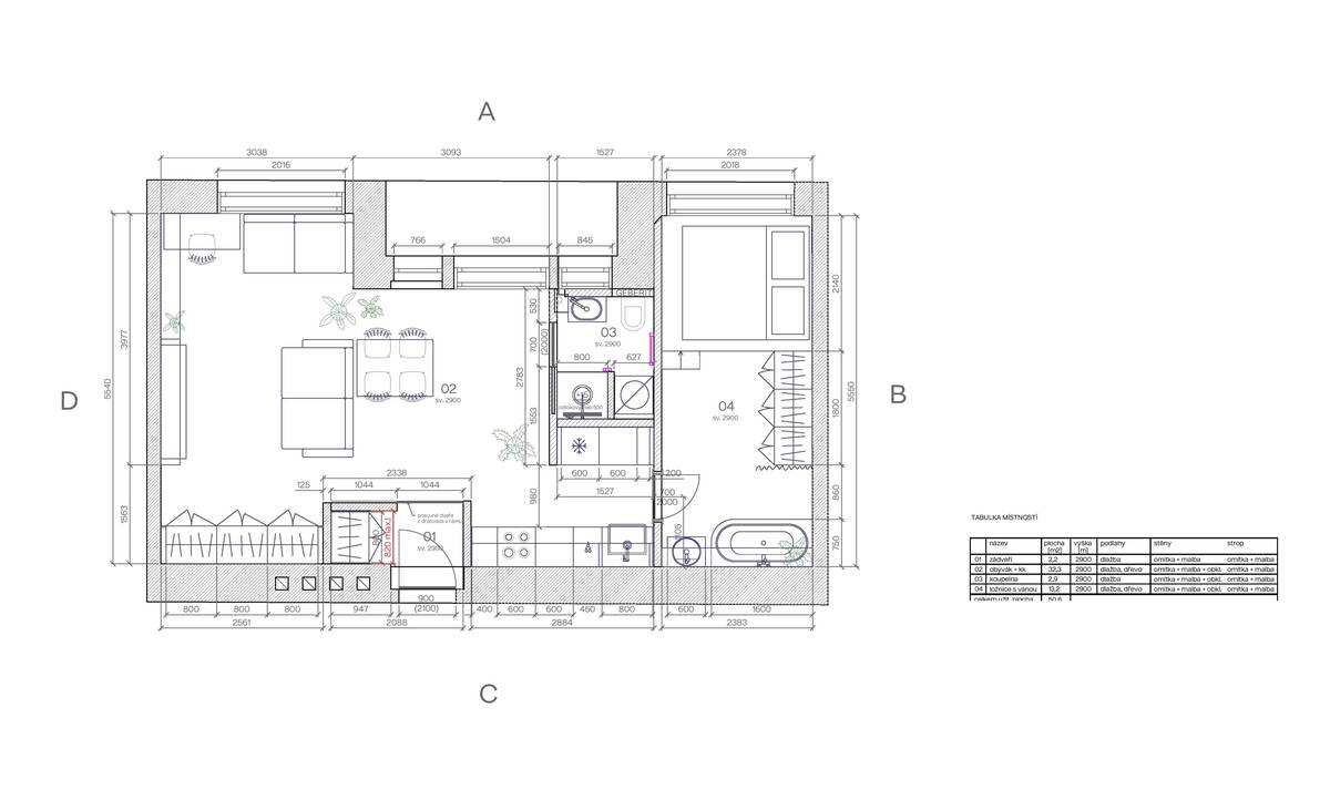 Původní dispozici 2+1 upravili na otevřenější 2+kk