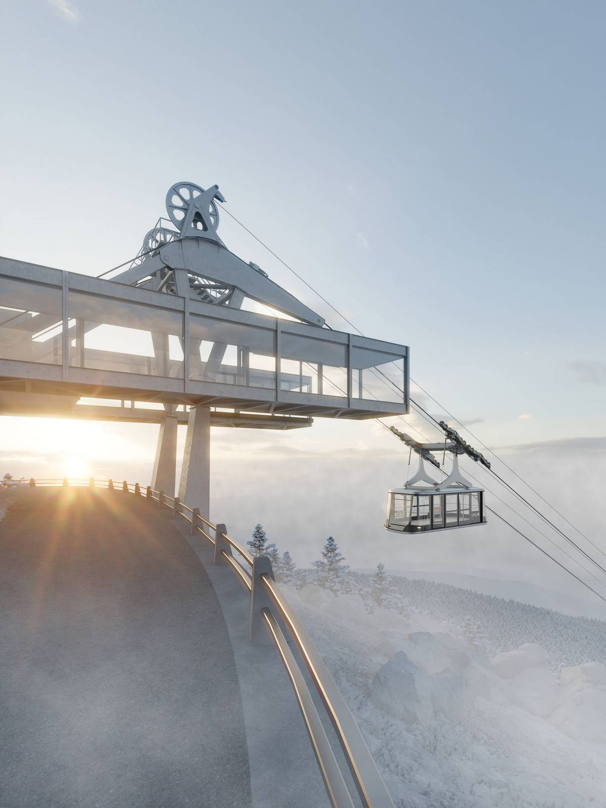 Nová lanovka se inspirovala ikonickou budovou vysílače a hotelu Ještěd.