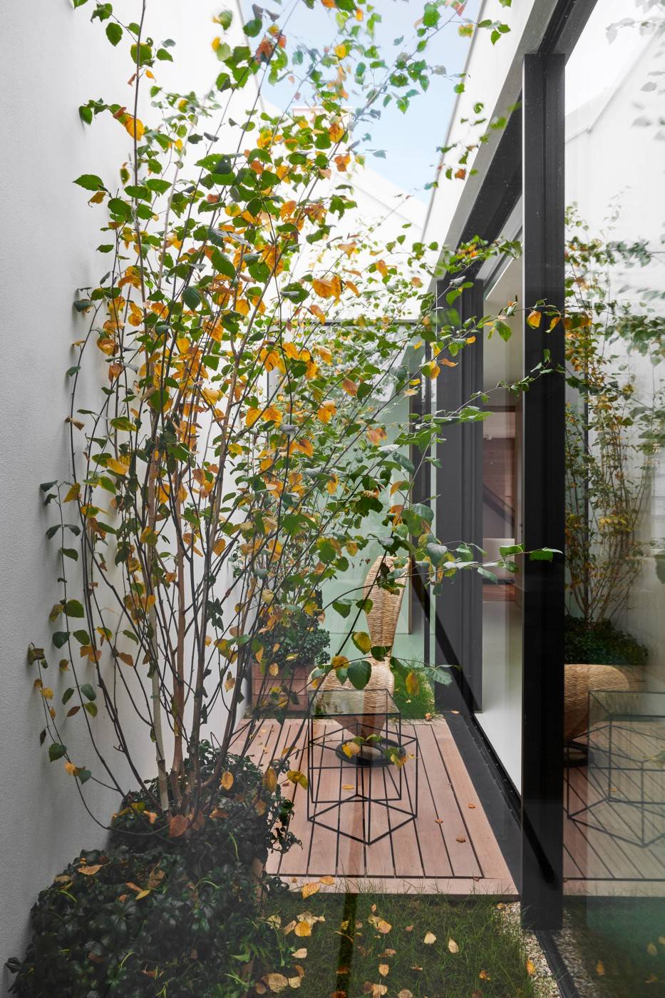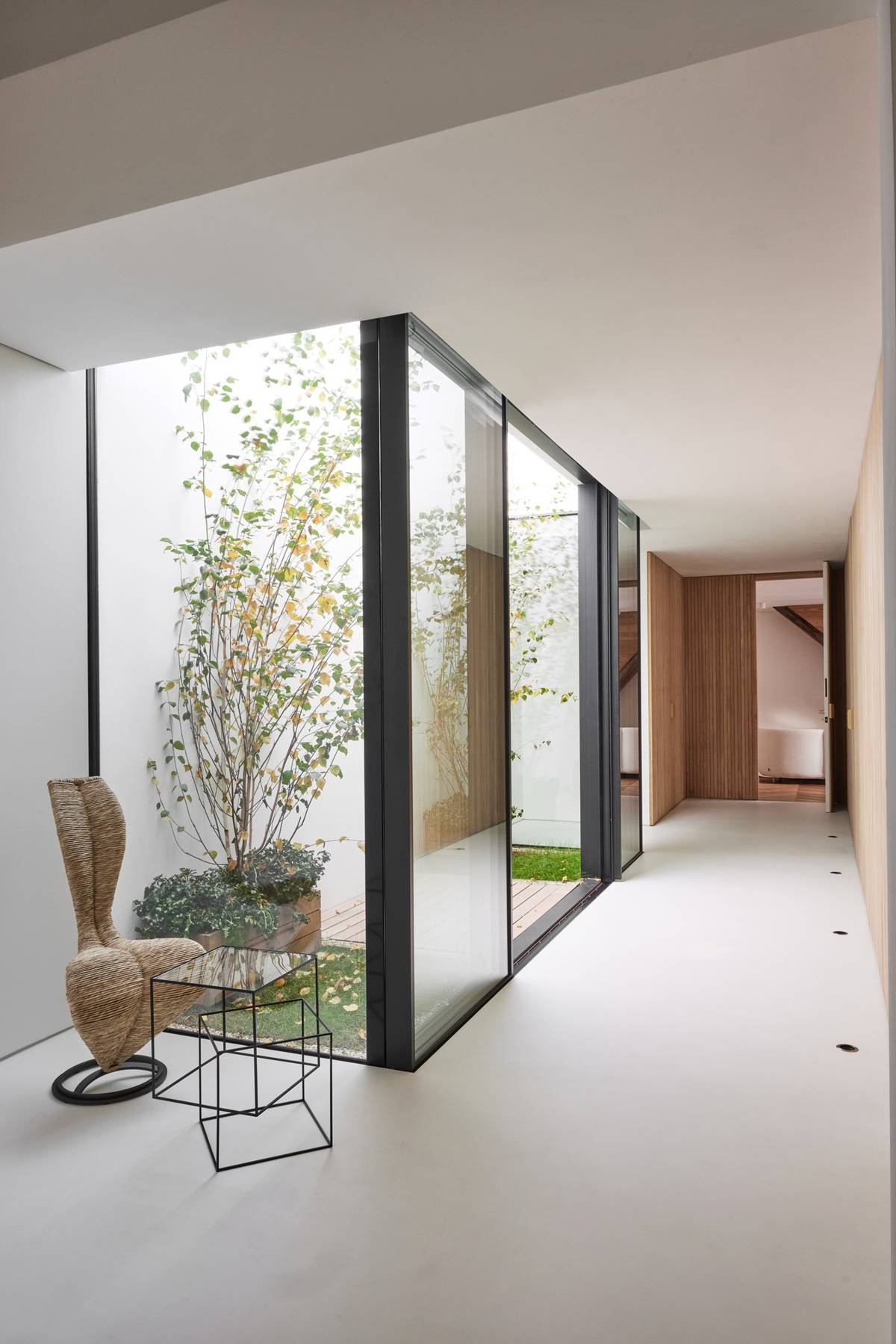 Venkovní atrium není velké, ale přesto mění ráz interiéru