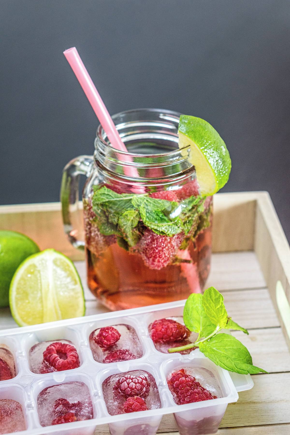 Není nic jednoduššího než zamrazit čerstvé maliny, jahody či kuličky hroznového vína a pak z nich připravit limonádu. Do ledových kostek můžete přidat rovnou i šťávu z limetek či kousky máty
