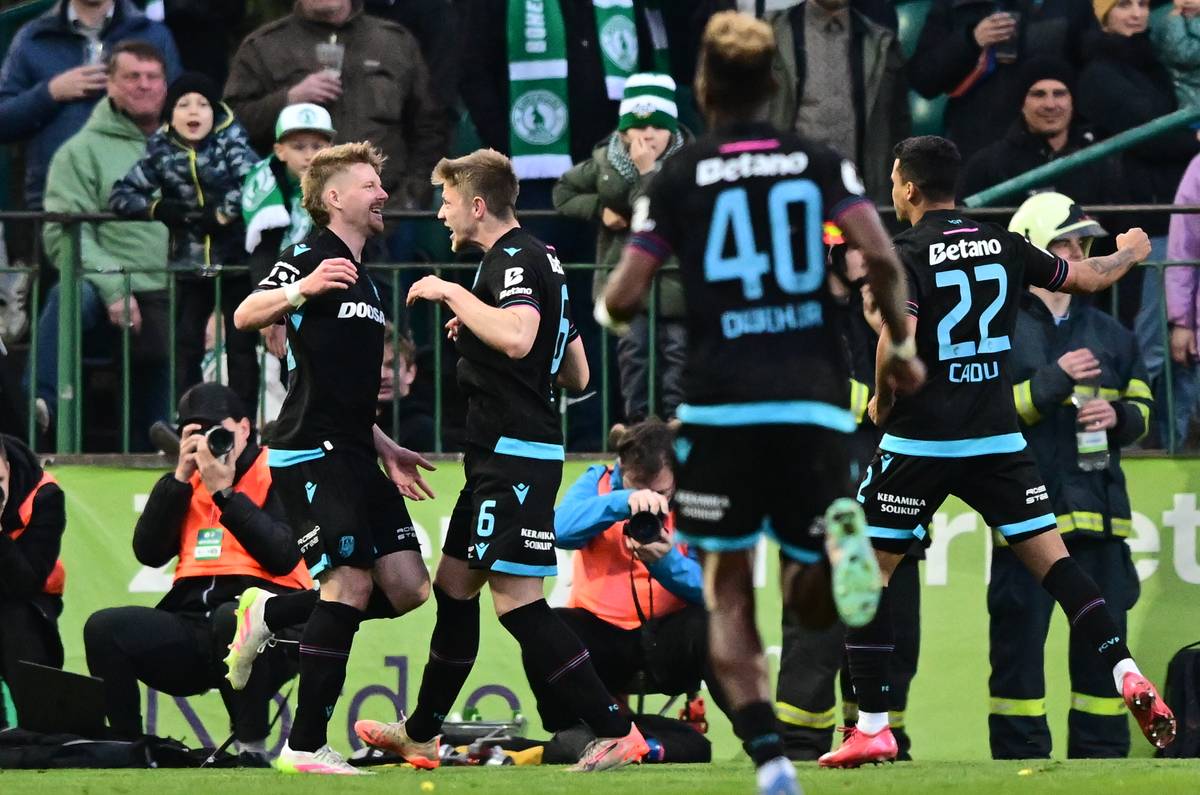 Brankář Viktorie Plzeň Viktor Baier inkasuje gól od Aleše Čermáka z Bohemians během utkání čtvrtfinále MOL Cupu.